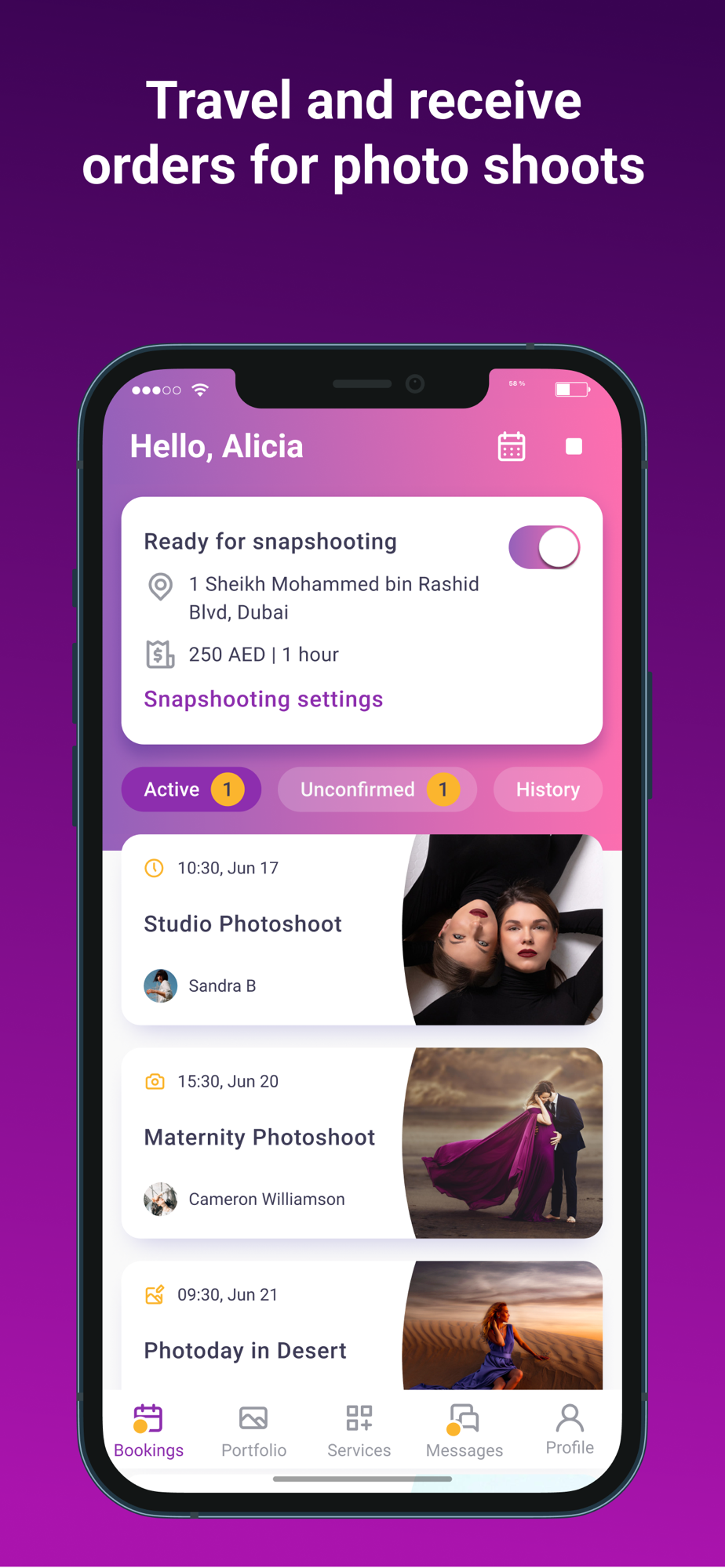 Create an unlimited number of services, such as: photo shoot in the studio, on the street, model tests, wedding photo shoot, family themed shooting, shooting events and birthdays, reportage shooting, photo walk, love story and many others in accordance with those genres you specialize in. Set your price for each service. Add a description, as well as a timeline for delivering the photos. Be yourself and show yourself.