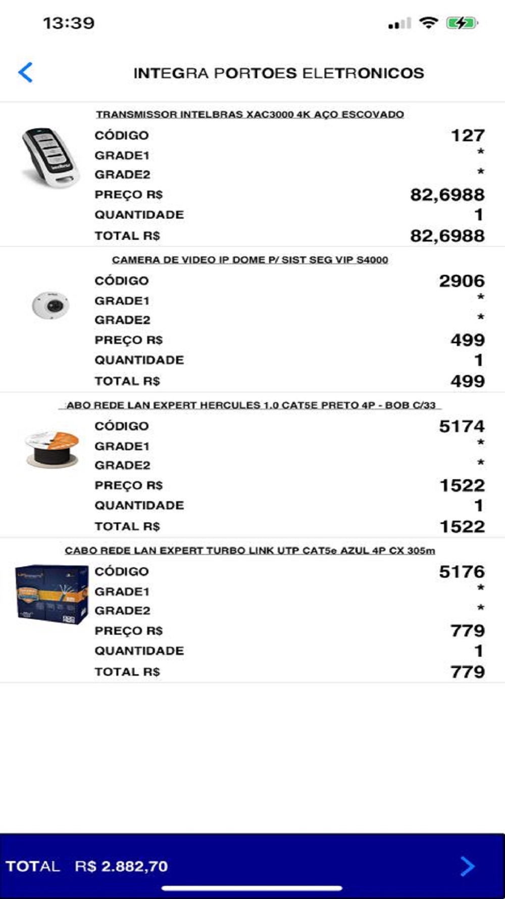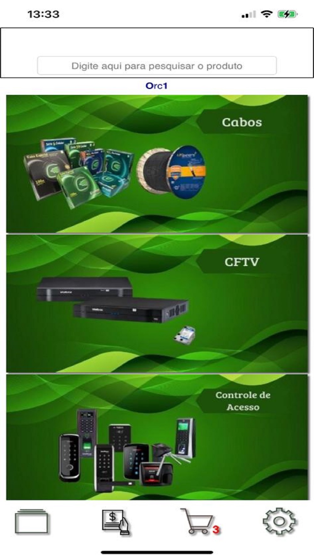 Aplicativo para venda de itens eletrônicos como câmeras, alarmes etc