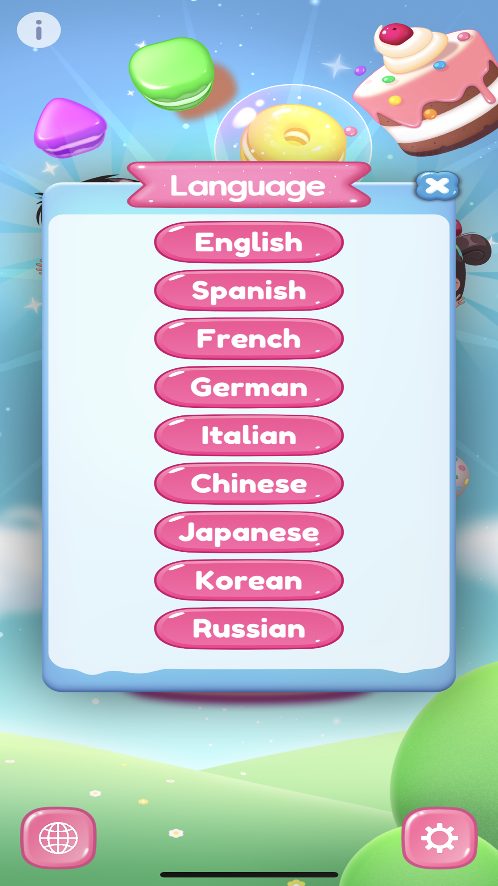 All the usual action and puzzle solving you’re used to with a quality match 3 game, but with innovative twists and features to keep you playing for hours. 150 levels in the release version, with more levels being released on a routine basis. Easy to play for the beginner but tough to master for even the most experienced match 3 player. This game features nine language options: English, Spanish, French, German, Italian, Chinese, Japanese, Korean and Russian.