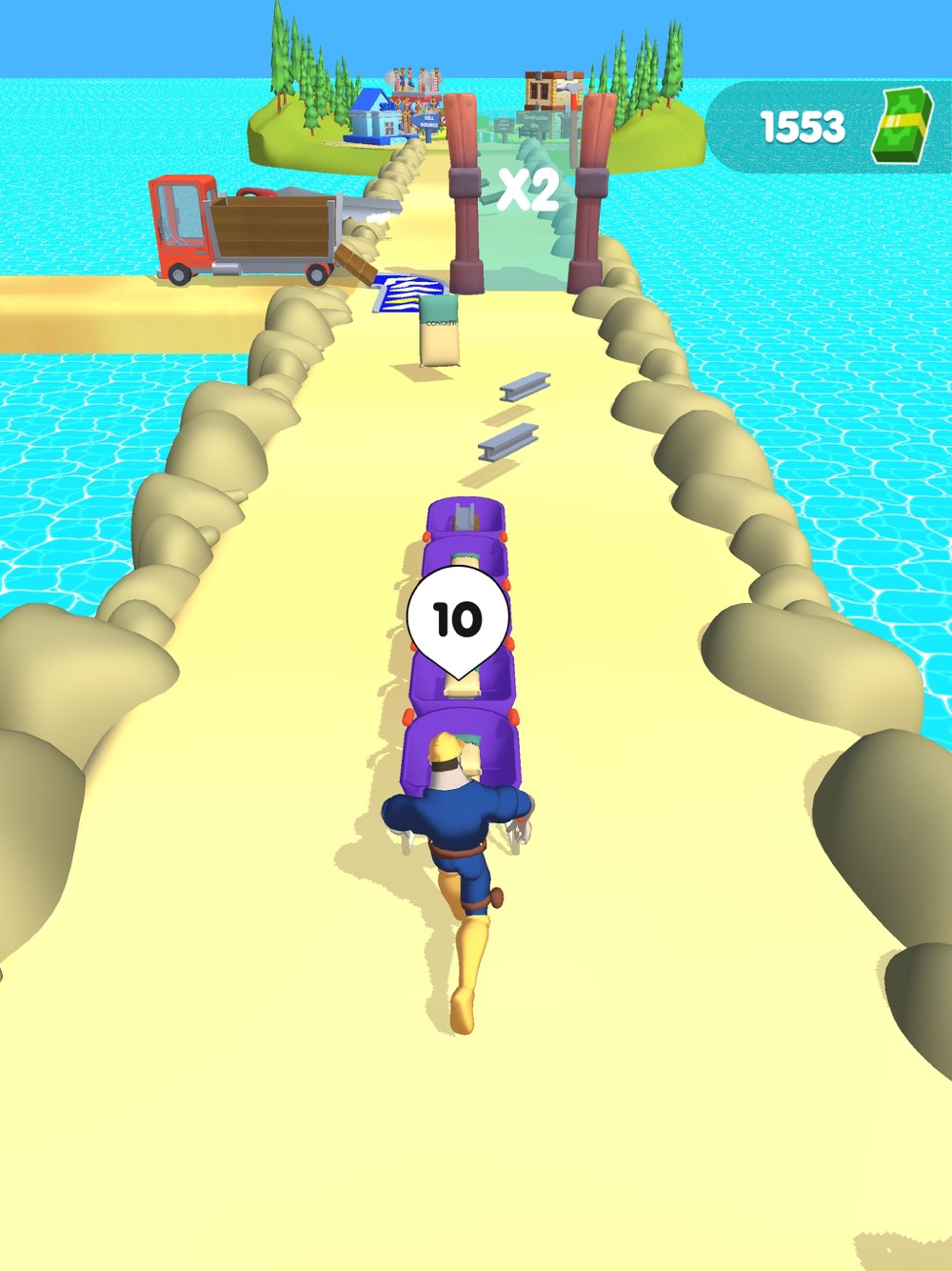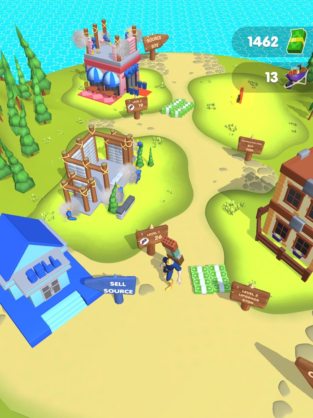 Fill your wheelbarrow with materials and deliver them to the town.