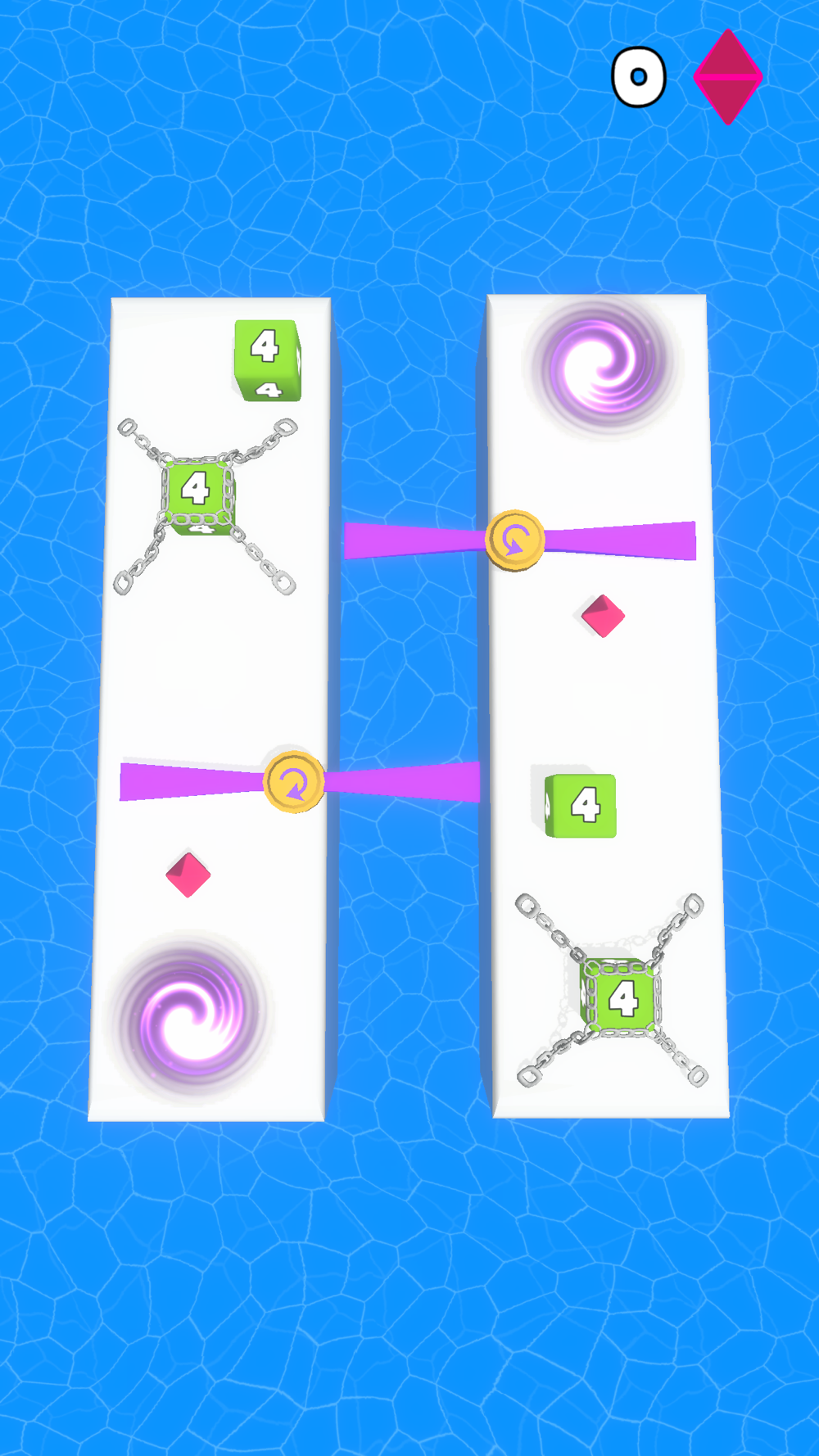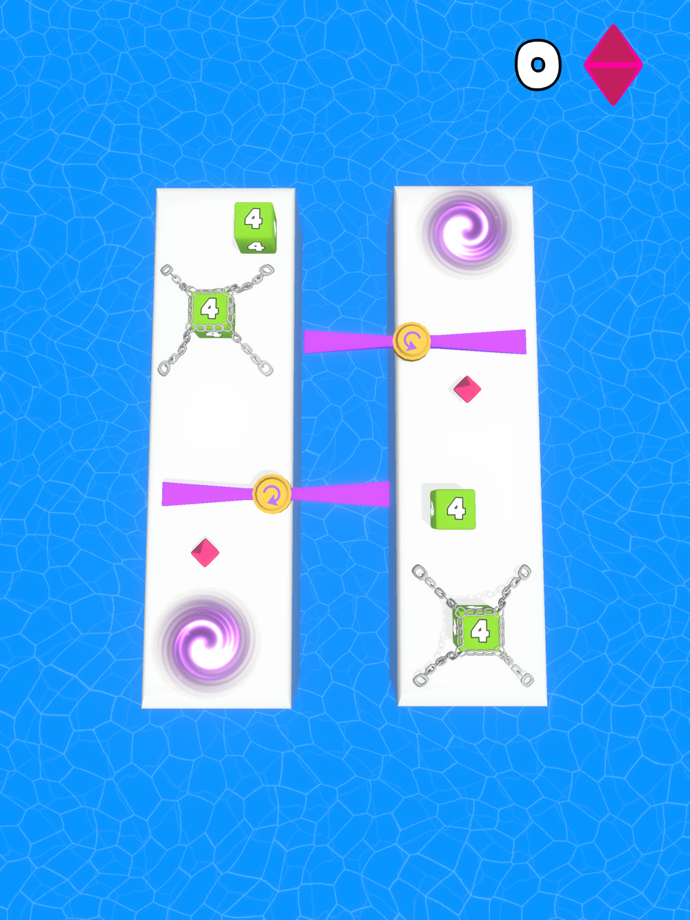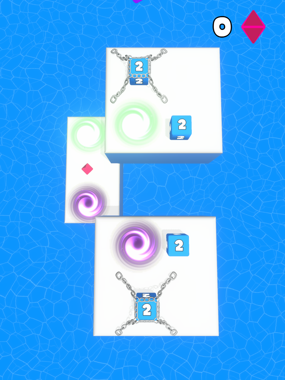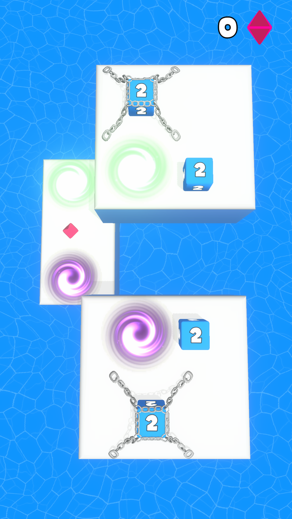 This is the reincarnation of the classic 2048 game, only here you have to solve puzzles! Your goal is to get the maximum number on the level, for this you need to dodge obstacles, use portals to complete the task! Cubes with the same numbers need to be connected to each other, for this click on the cube and drag it to another cube. Carefully! Do not drop the cube into the water, otherwise the level will fail!