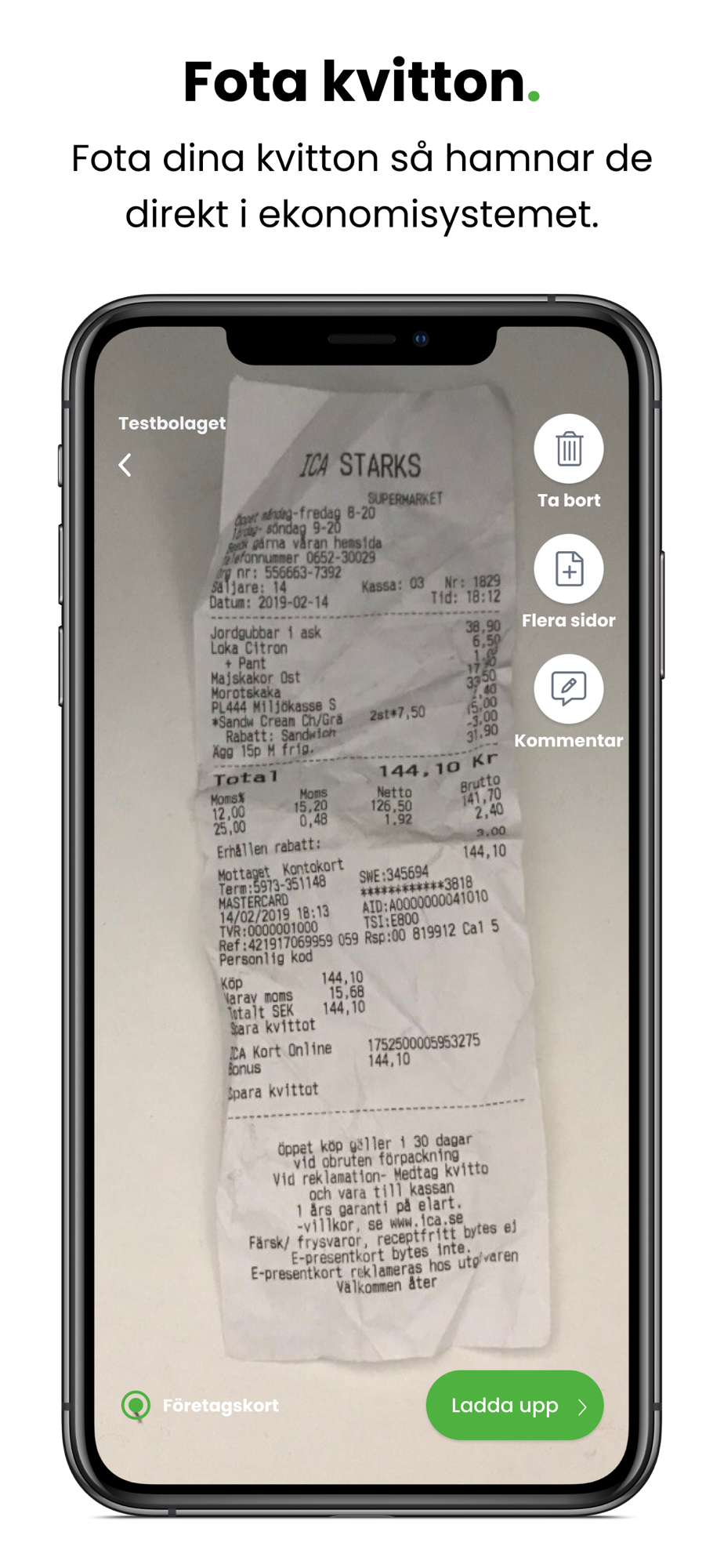 Med Helt Digitalt får du pushnotiser och aviseringar om viktiga saker du behöver göra eller känna till. Du kan skapa, skicka och följa upp dina kundfakturor. Du kan också fota och skicka in kvitton och andra underlag samt registrera kassarapporter.