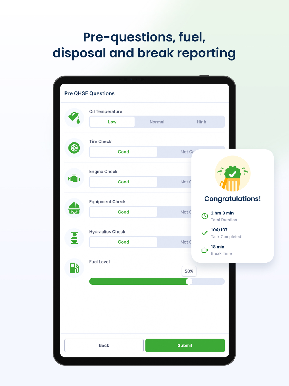 Health, Safety, Environment, and Quality (HSEQ) checklist interfaces with visual support