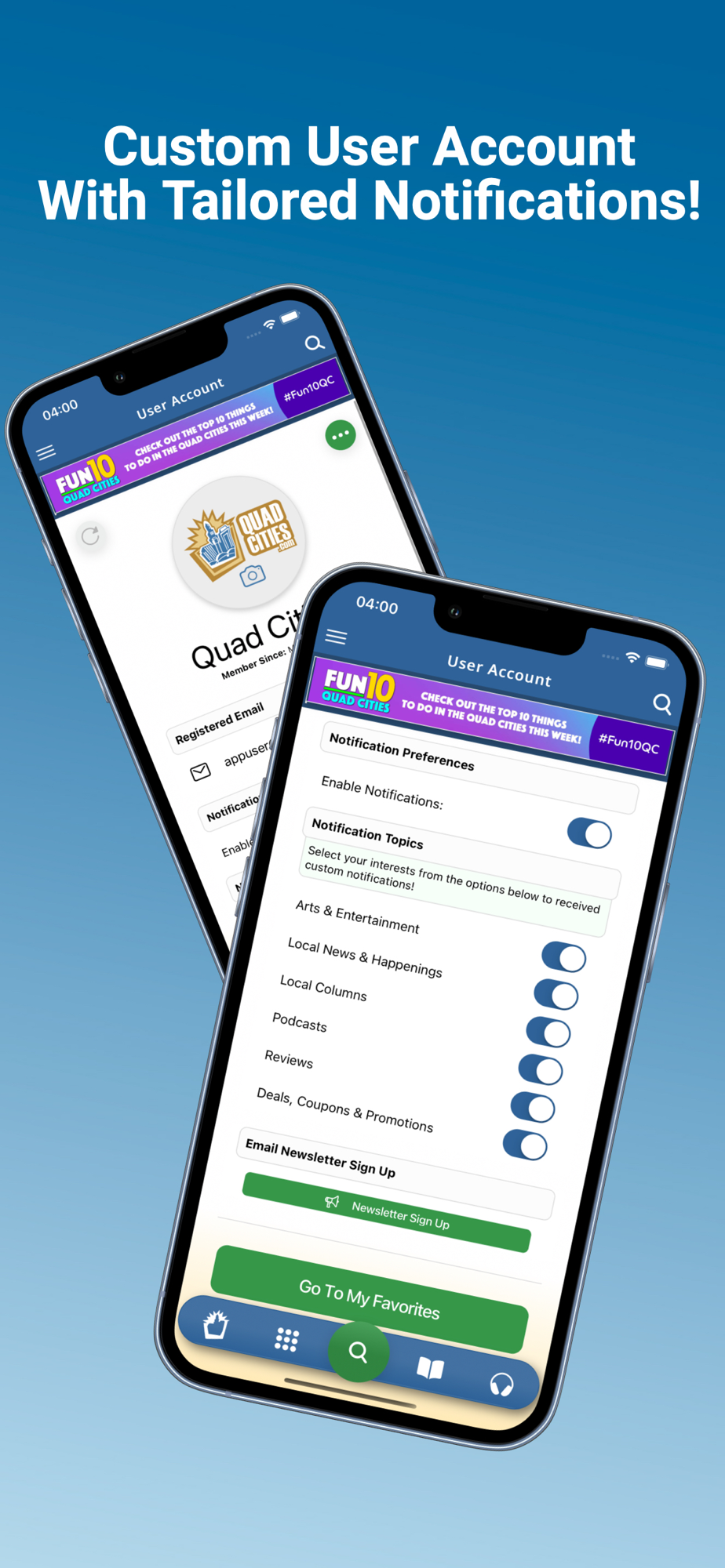 The app gives you all of this with quick and easy navigation, a powerful search function and much more. You can even build a personalized favorites collection of your favorite articles, columns, podcasts and local businesses for easy future reference. Think of this as your own personal directory of your favorite places, events and deals in the Quad Cities. Of course, you can also elect to receive instant notifications about the latest breaking news and announcements, and/or subscribe to our daily email newsletter recap. Check us out today!