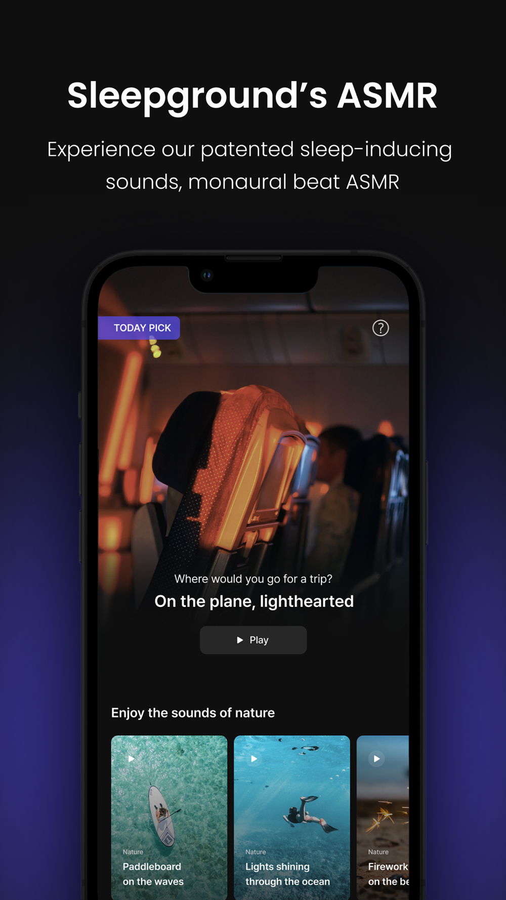 It induces fast sleep with self-produced ASMR with proven sleep-inducing sounds at Yonsei University's Institute of Applied Brain Cognitive Science. On a sleepless evening, have a good night's sleep through Sleepground 's patented sleep-inducing monaural beats and ASMR made by a sound designer. It helps you sleep naturally in a comfortable state.
