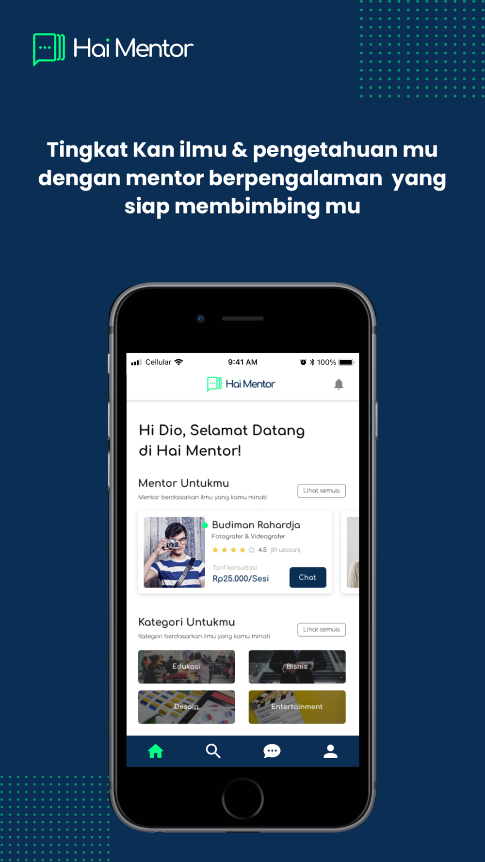Hai Mentor adalah aplikasi digital education yang membantu kamu menemukan mentor terbaik dan sesuai untuk berkonsultasi dan mengatasi masalah mu dalam mempelajari suatu hal.