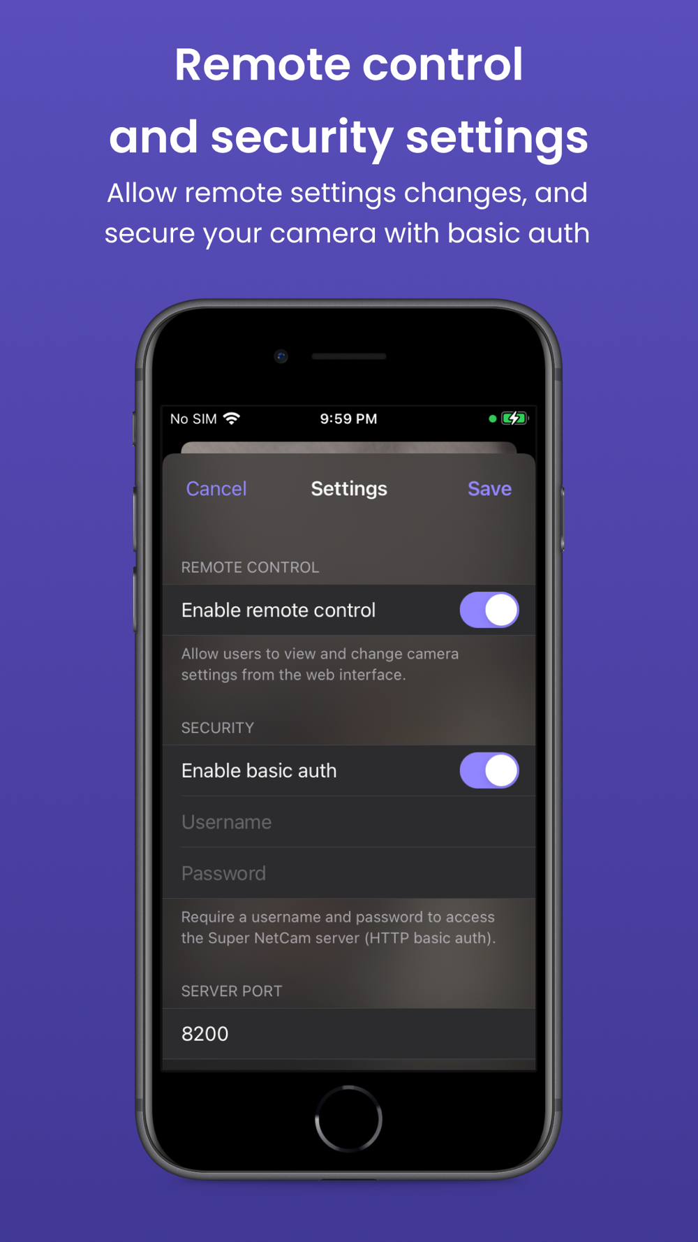 • HTTP basic auth option to secure the Super NetCam webserver with a username and password
