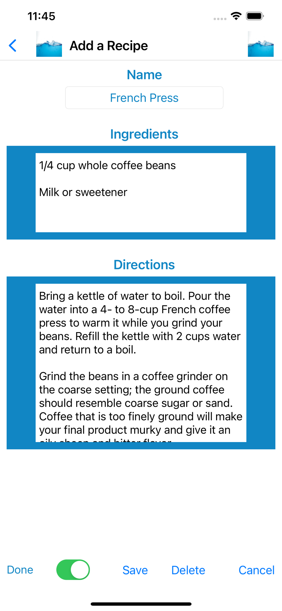 Each drink recipe includes step-by-step directions - with an interactive check list for collecting ingredients; once all necessary ingredients are available - easy to follow, detailed preparation steps are displayed; store, retrieve notes of favorite recipes;