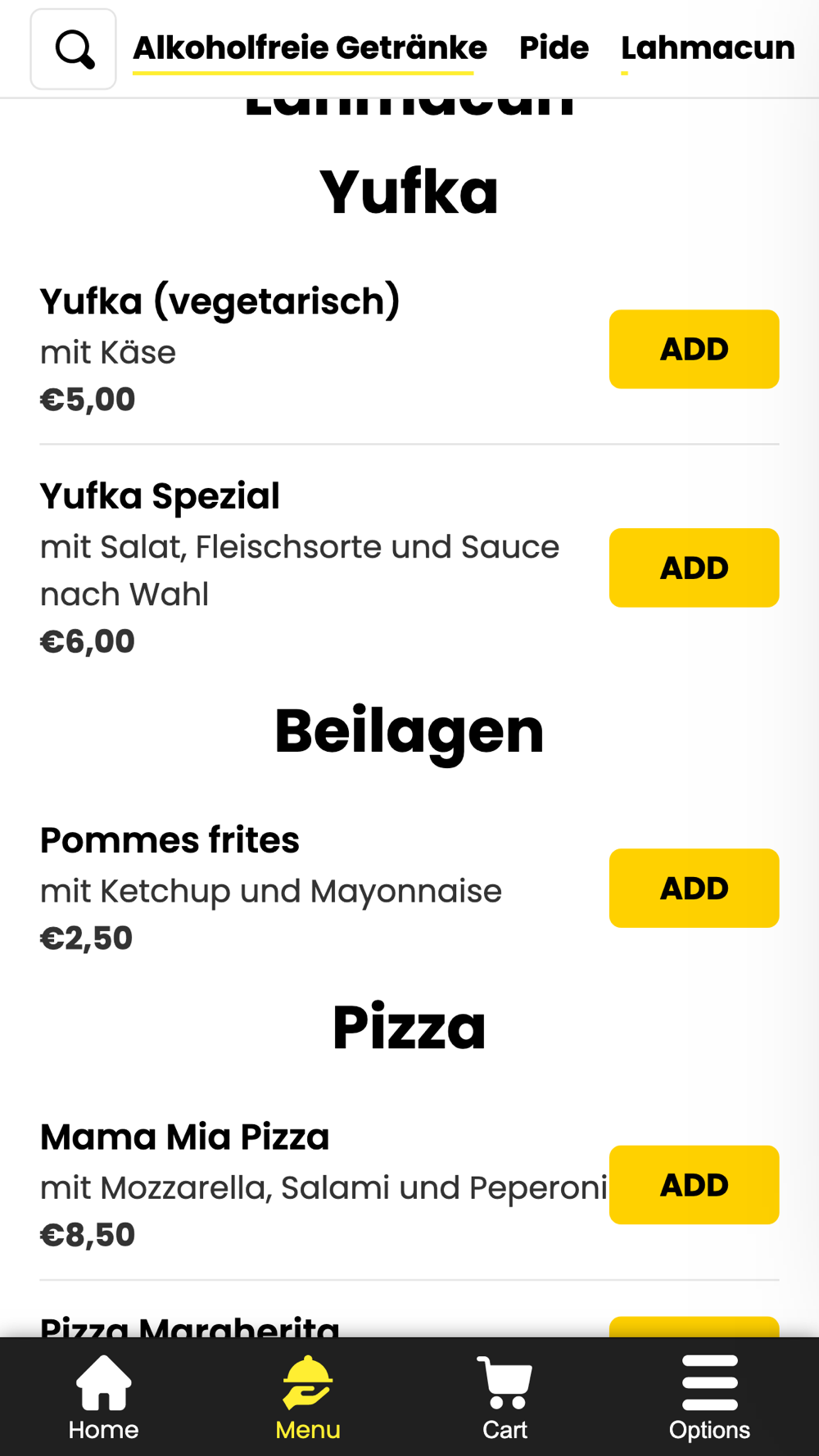 - Durchsuchen Sie die Speisekarte des Restaurants und sehen Sie sich alle anpassbaren Optionen im Voraus an