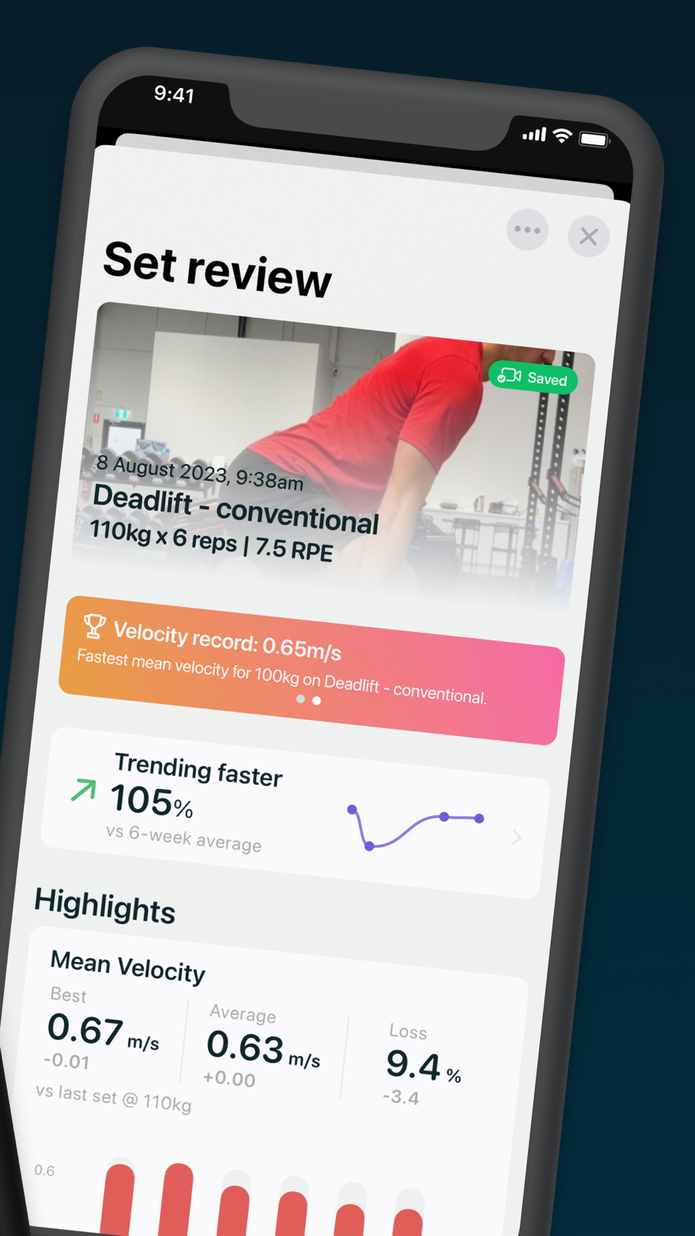 - Progress insights: Our Trends tab and performance charts provides a snapshot of your progress on strength, power and bar speed over time, crucial for assessing real-time fatigue levels and long-term performance gains.