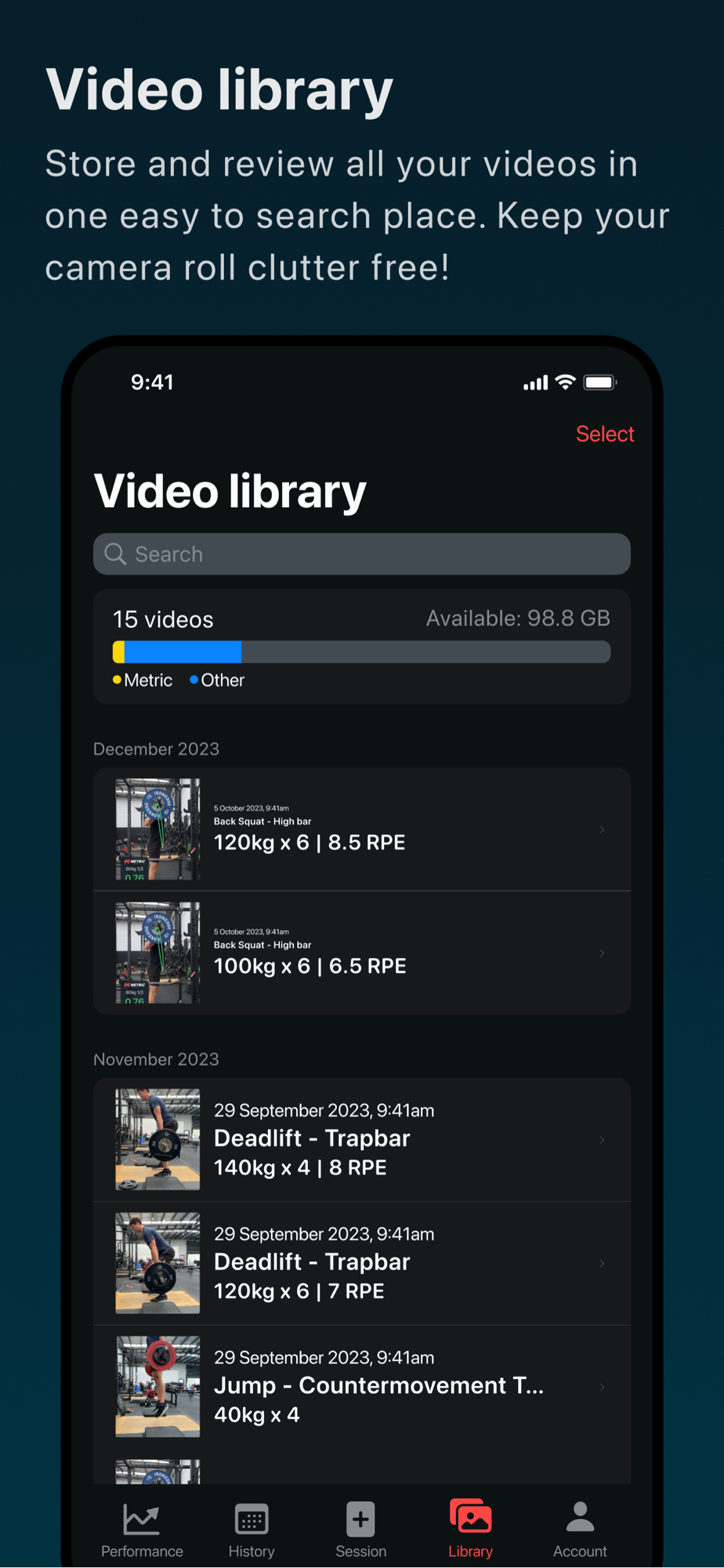- Video Library: Easily store, search, and review your training sets through our in-app video library. Share or export videos, and keep your camera roll clutter-free.