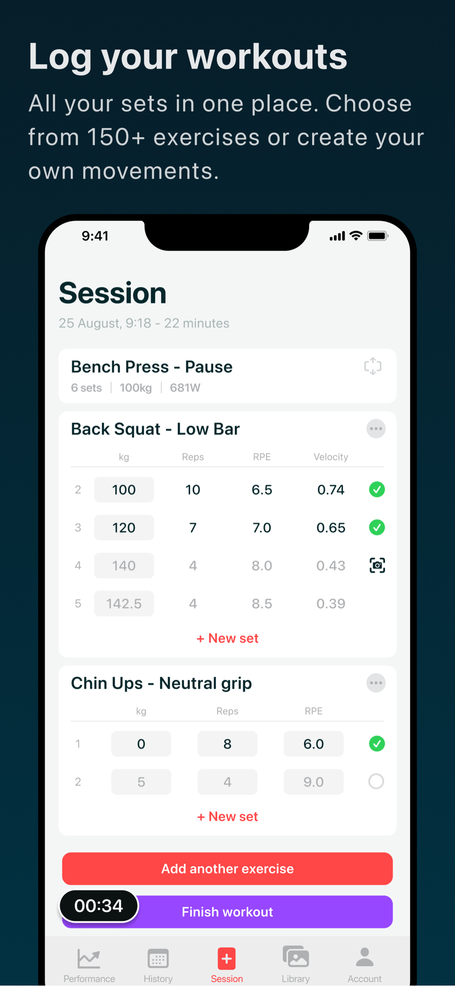 - Full Workout Tracker: Log all your velocity-tracked and non-velocity exercises with the workout builder. Record your velocity tracked lifts and manually enter your other lifts to track your entire workout in one app.
