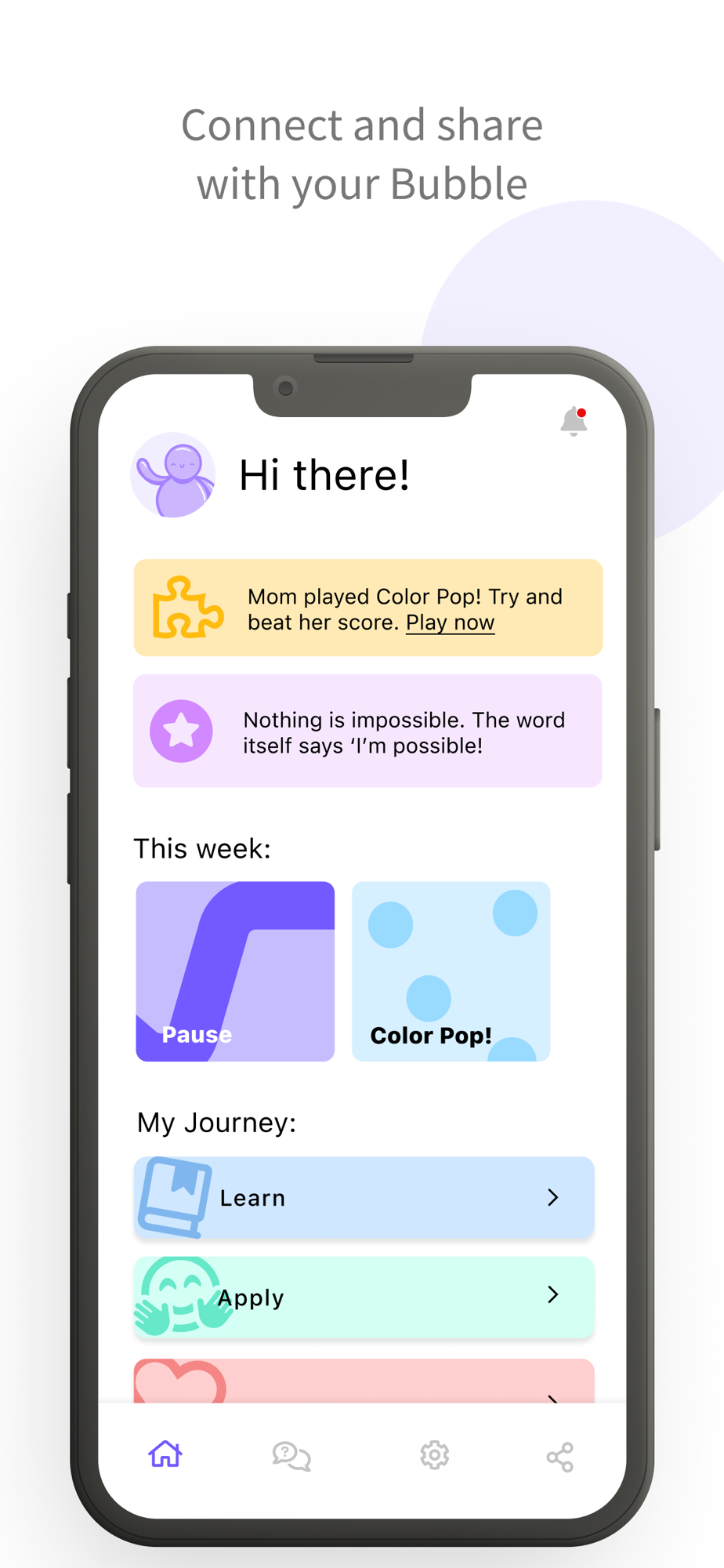 Bubble improves teen mental health through enhanced connections with parents and caregivers, using evidence-based interactions and coaching.