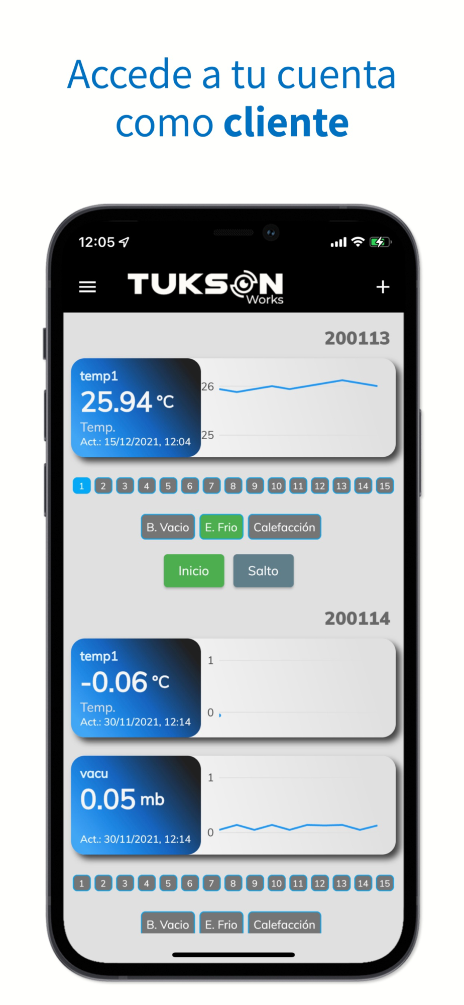 Mantenga un control de sus dispositivos casi en tiempo real, puede crear gráficos y alertas y todas las ventajas que le ofrece la app de TuksonWorks