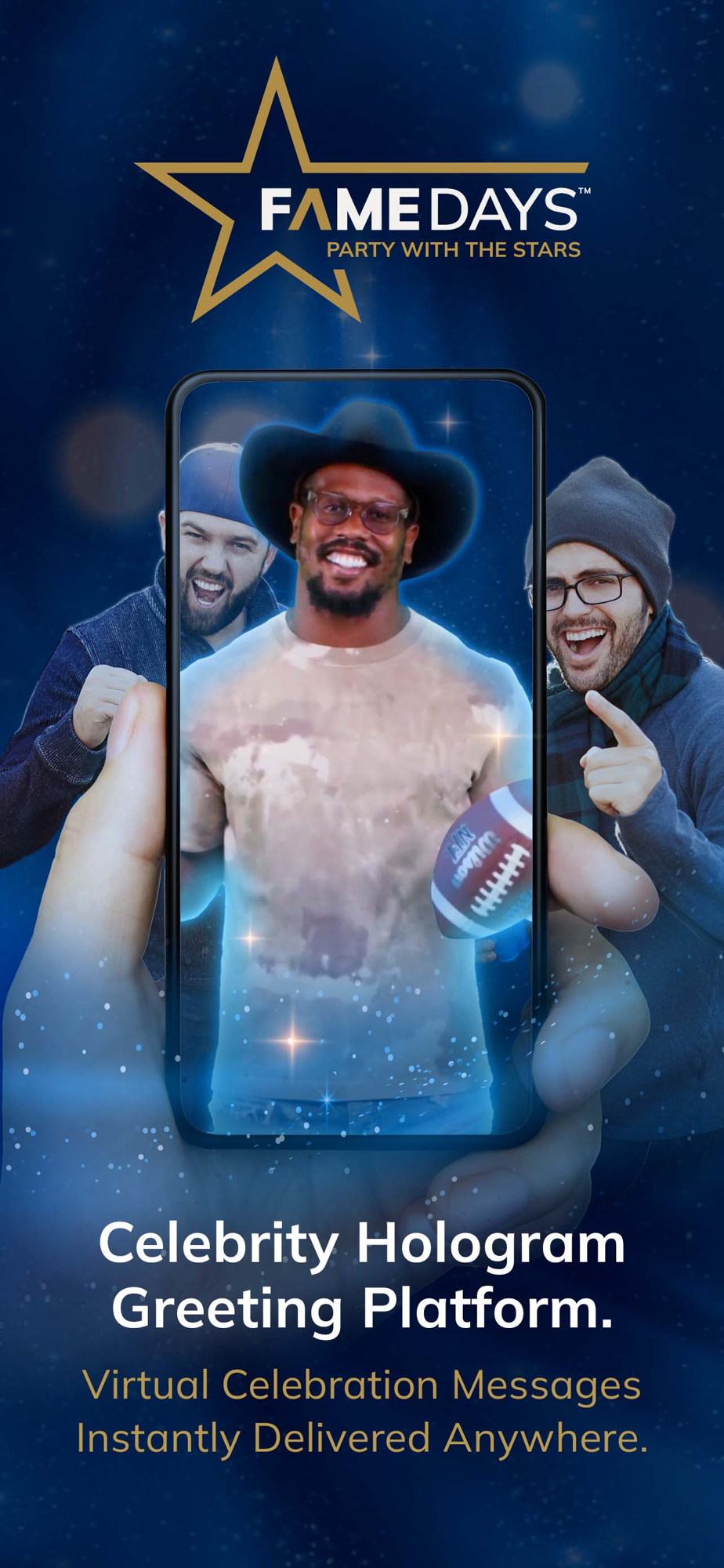 FameDays allows you to select ‘real-life’ holograms of famous athletes and stars to instantly deliver anywhere in the world celebration day greetings to your family and friends. Virtual greetings include Birthday, Anniversary, SuperFan, New Baby, Holiday, and many more. Recipients of the virtual greetings can take videos & pics with the celebrity hologram using this FameDays app and can instantly share in social media too. Celebrities include Von Miller (Football), David Ortiz (Baseball), Adam Scherr (Wrestler), and many new ones added regularly. Sign-up on Famedays.com to learn about new celebrities added to the platform as well as special promotions and sweepstakes.