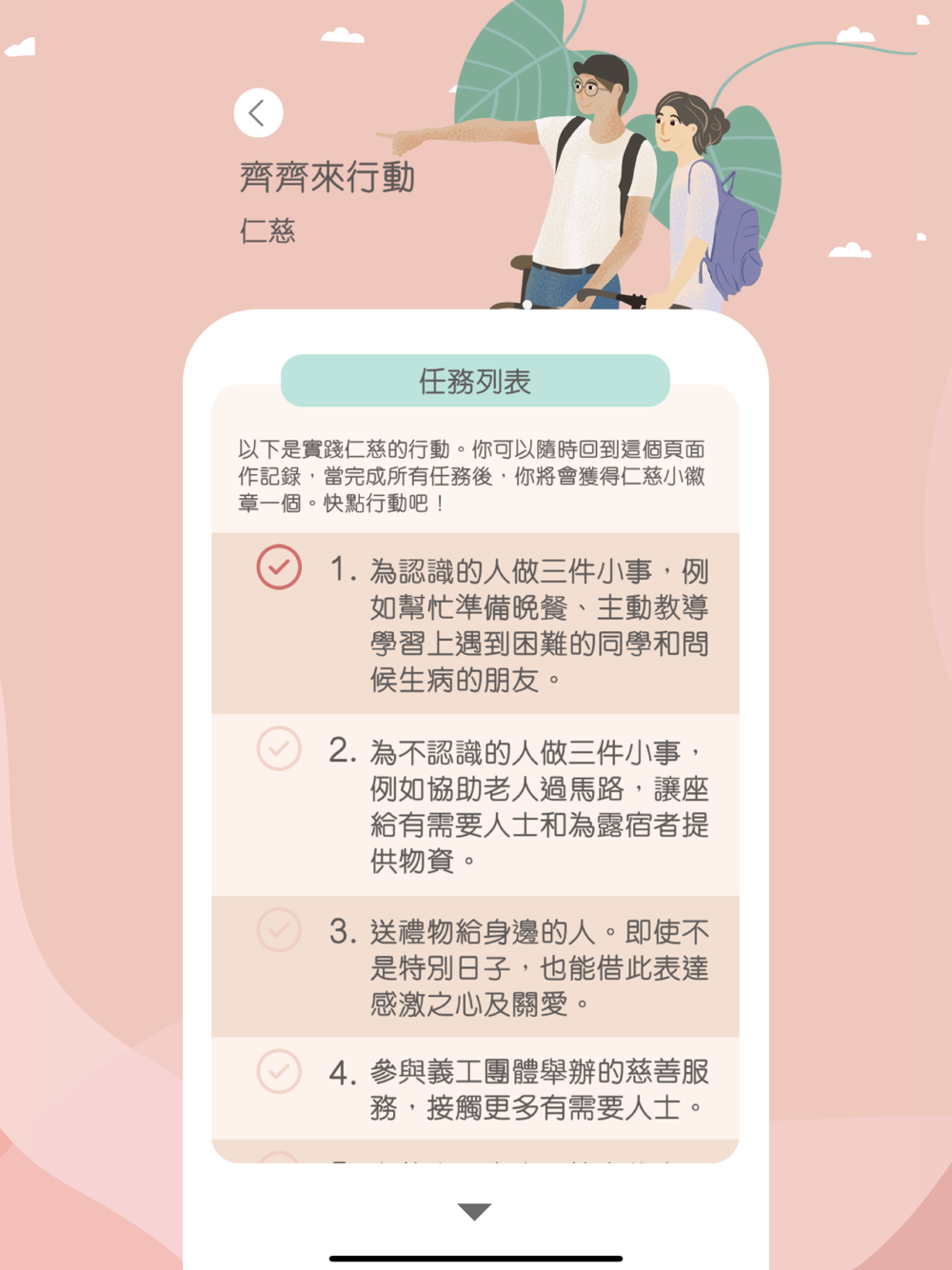 CAST: CharActer Strengths Training 應用程式是 A Better Place to Learn: School and Student Wellbeing 計劃所推出有關美德與性格強項的網上訓練項目,獲香港教育大學FEHD Strategic Area (Learning and Teaching) 撥款進行。本網上訓練項目旨在讓大眾認識此正向心理學的概念,幫助人們了解自己的正面特質,從而充分運用及發揮性格強項。用戶可於應用程式按照個人進度進行一系列的訓練任務,當中包括瀏覽相關學習材料、完成模擬場景動畫練習及進行評估等等。