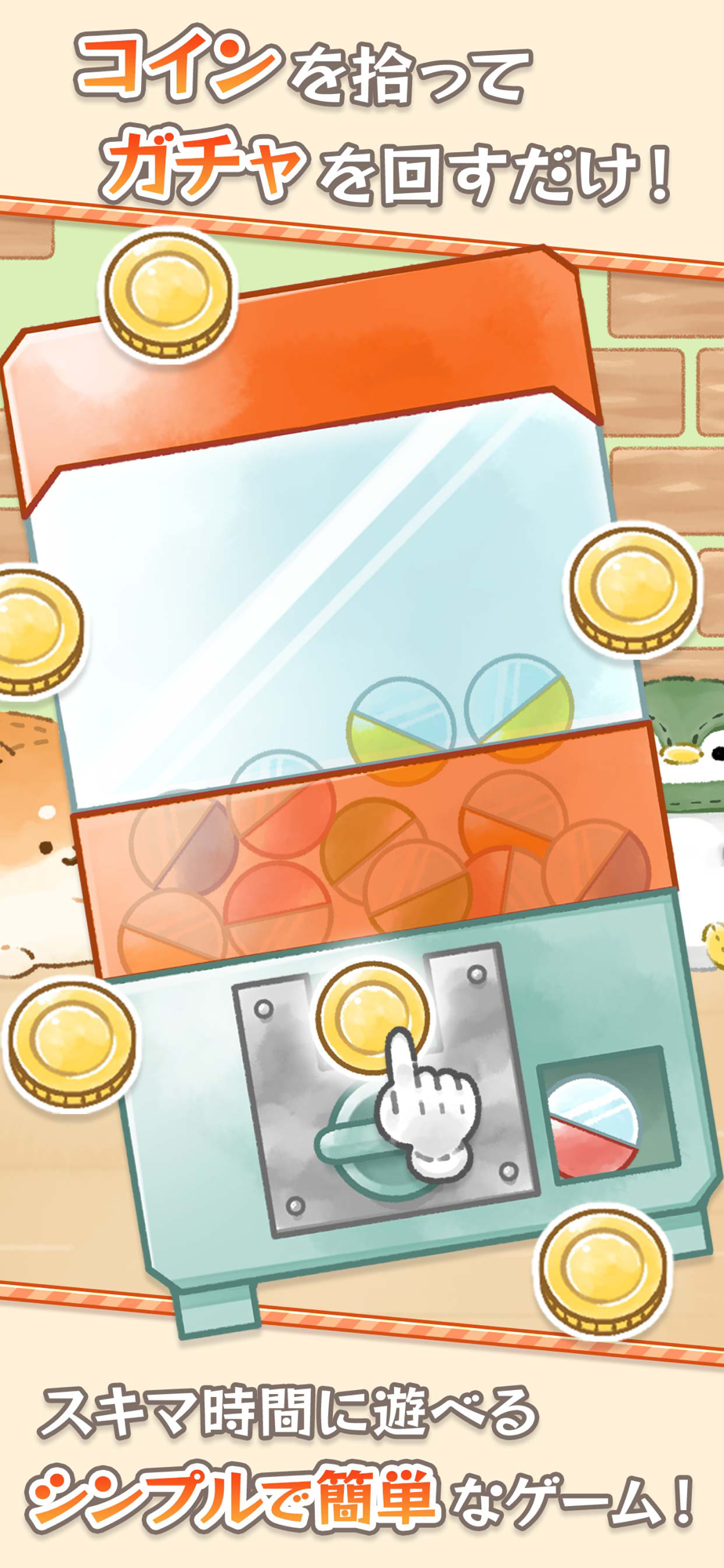 完全無料のガチャガチャを回して、可愛いキャラクター達を集めよう。簡単な暇つぶし面白ゲームだよ。