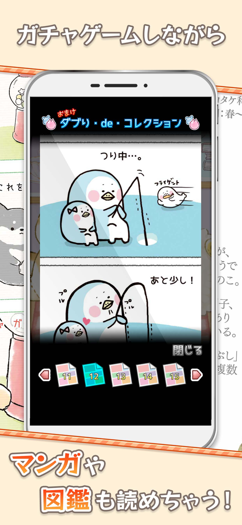 本物のガチャガチャを回しているようなリアル体験を味わえるよ。まるで玩具の様な手触り感。ガチャガチャから、可愛いキャラクター達をコレクションしよう。「いーすとけん。、もちぱんだ、ぜんまいじかけのトリュフ、フラワリーキス、アニマルライフ、大人の図鑑、他」といった人気キャラクター達が飛び出すよ。