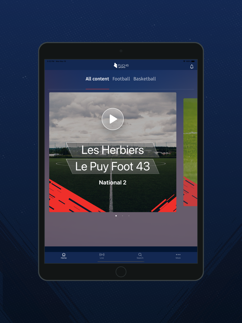 Grâce à l'application Fuchs Sports où que vous soyez, vous accédez en direct aux matchs de votre club préféré et ainsi restez connectés à votre communauté.