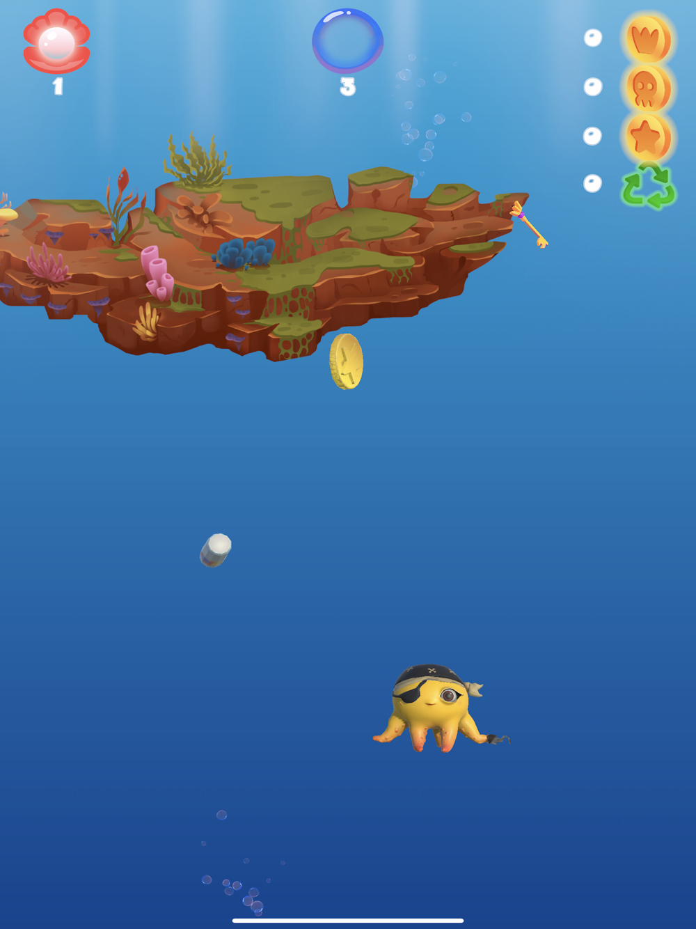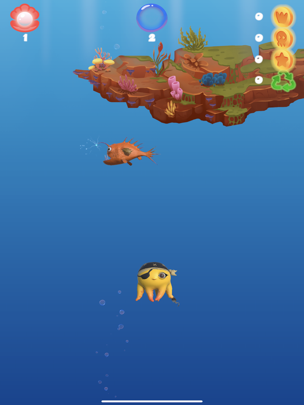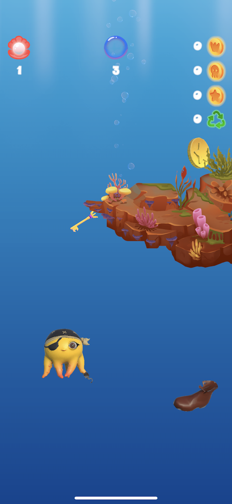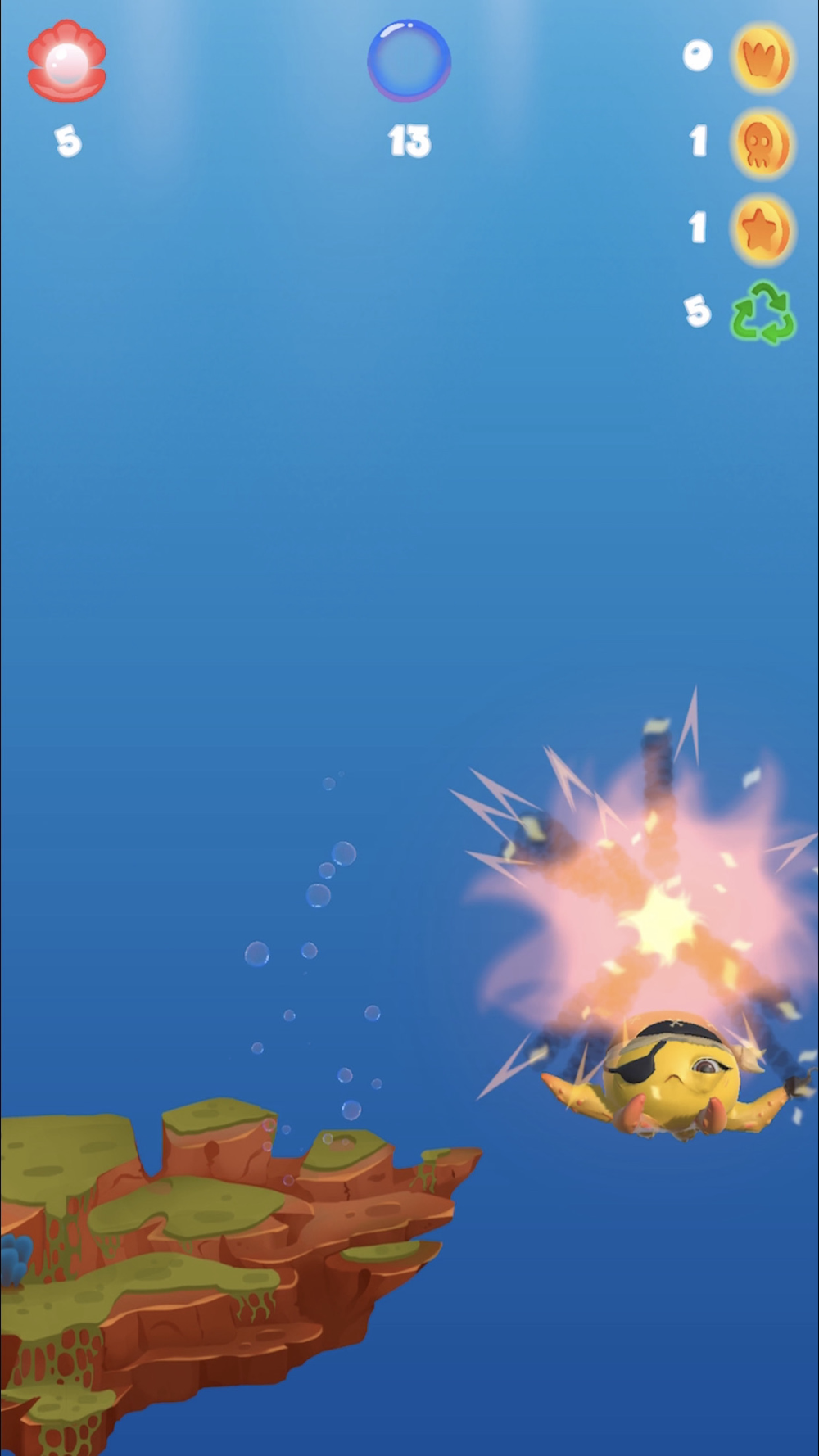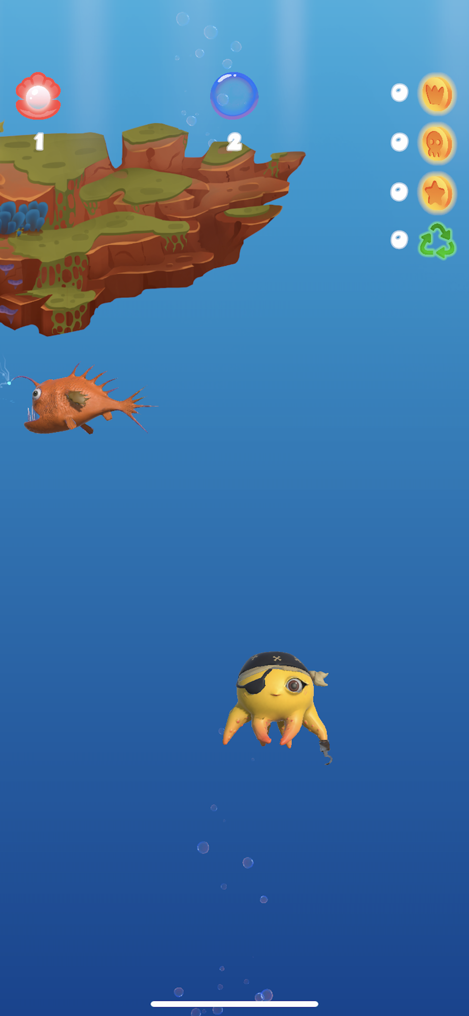 Octopy needs your help. He is stucked on the ground and needs to go up. But there are enemies and obstacles. You need to jump with Octopy. But be careful for electric fishes, mines and other enemies!