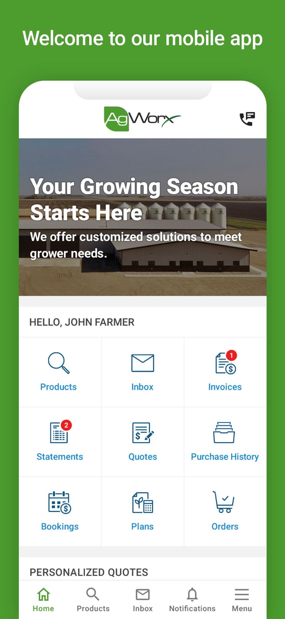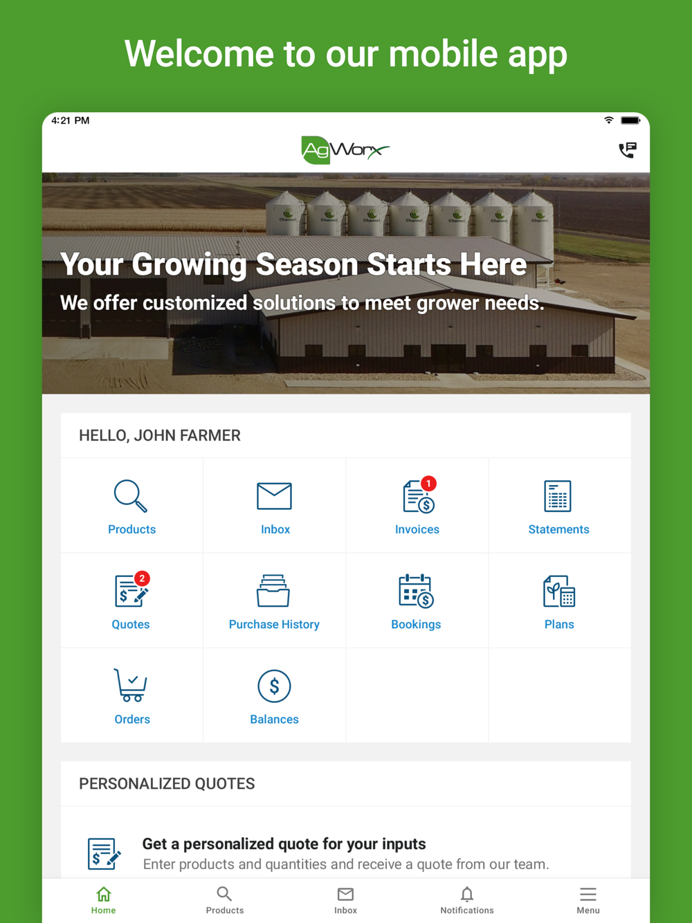 AgWorx is an agricultural retail company located in NE North Dakota that provides Wheat, Corn, Soybeans & Canola seed, Liquid Fertilizer & Crop Protection services in NE North Dakota & NW Minnesota. AgWorx also sells specialized farm equipment and technologies. This mobile app can be used to easily do business with AgWorx from anywhere.