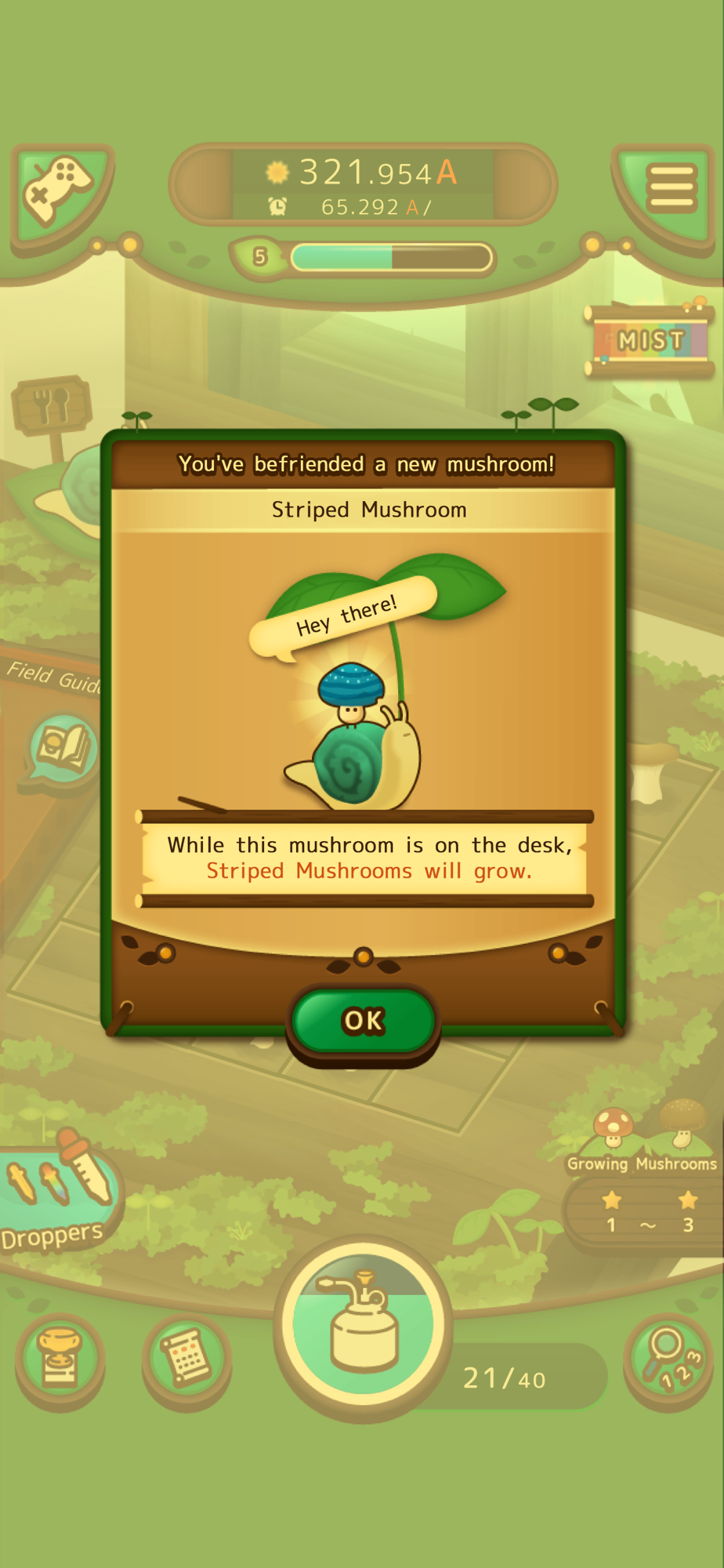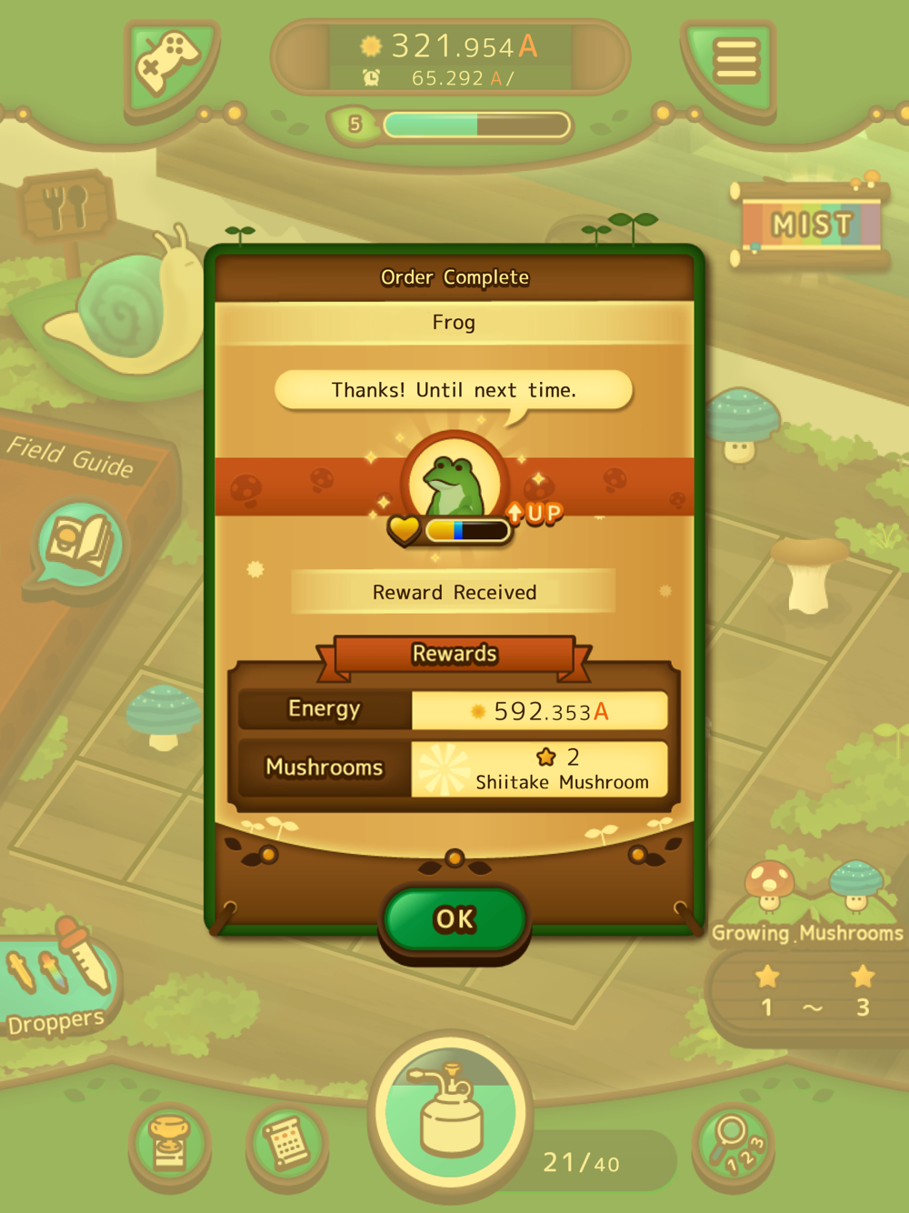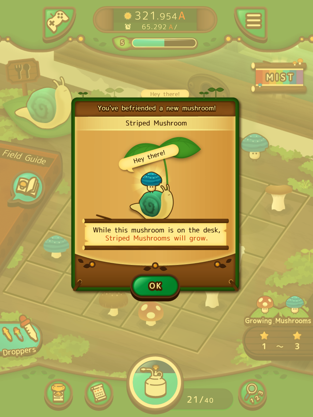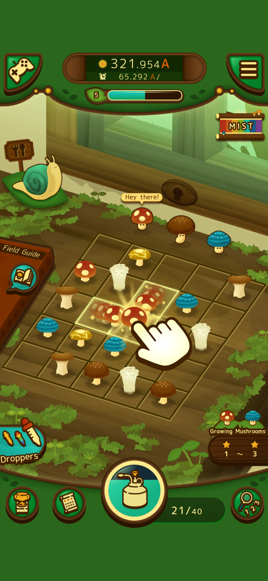 3) Use the energy generated by the mushrooms to unlock new friends.