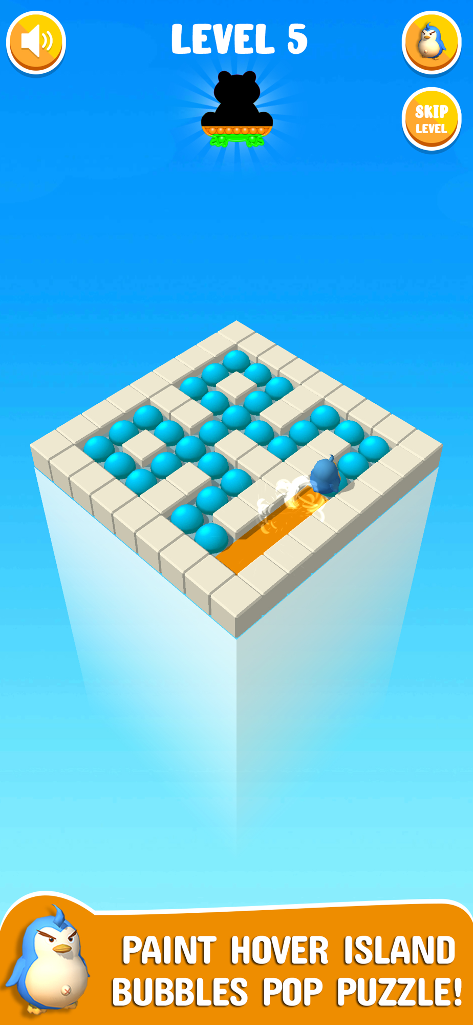 Become a paint master and Swipe up, down, right and left to paint and pop every bubbles on hover island to complete a level.