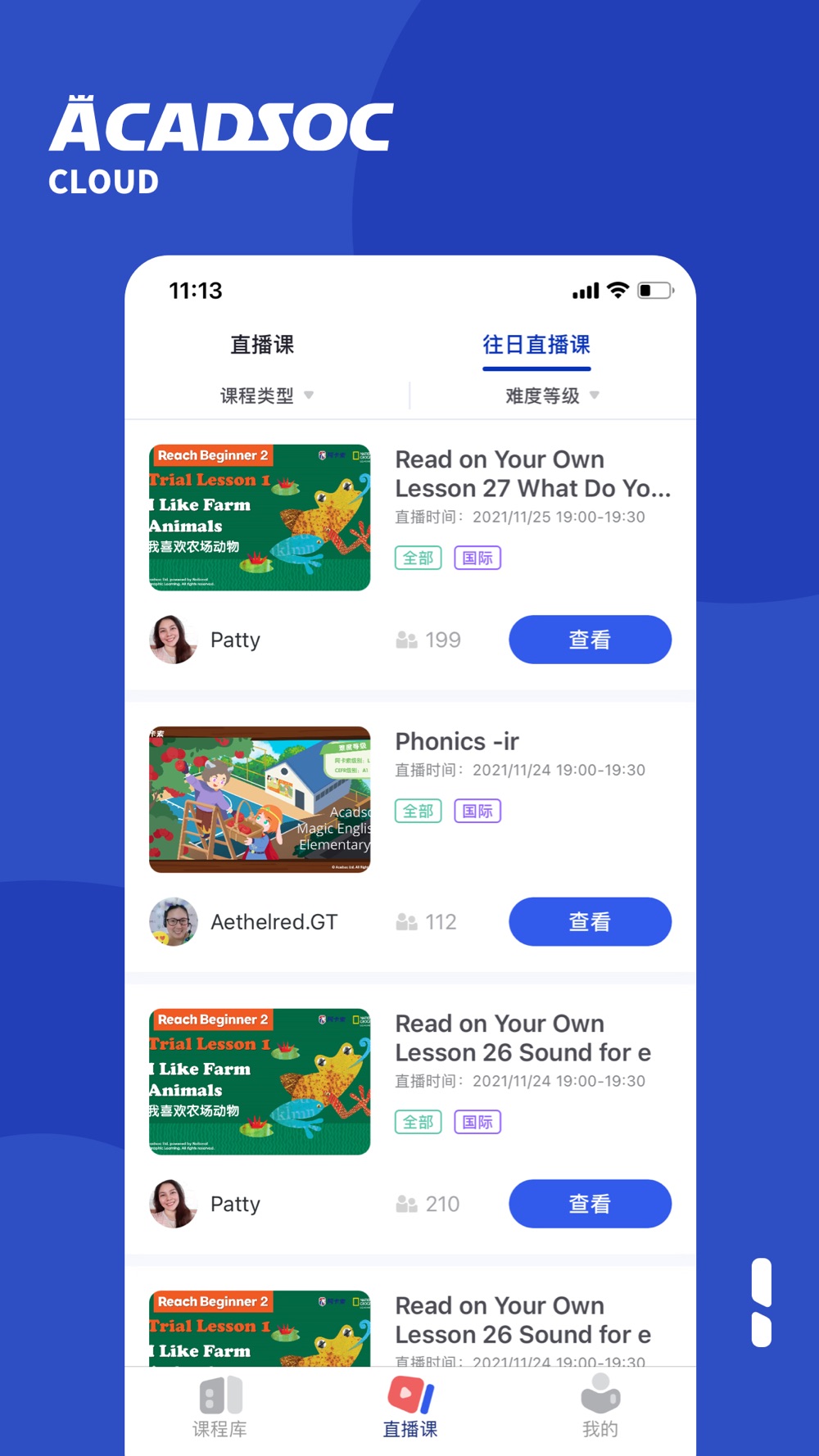 阿卡索云课堂是针对不同英语基础,自主研发专业课程的在线语言学习平台。全方位的学习体系,从字母入门到情景对话,丰富的配音内容,分级的视听素材,多元化的英语情景,图多字少的形象化教学,打造轻松学英语的语言环境。