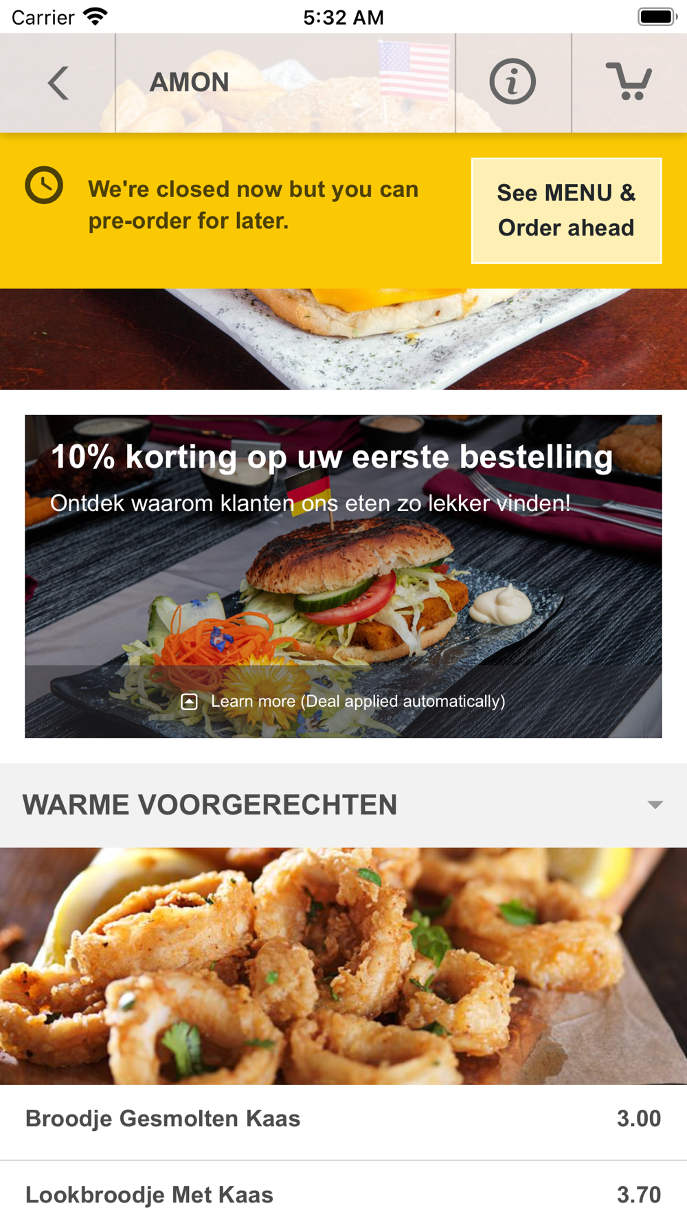 Ben je dol op online eten bestellen bij ons restaurant? Gebruik deze app om uw ervaring te personaliseren en profiteer van de eenvoudigste en snelste manier om uw favoriete eten te bestellen. Kenmerken: - Online eten bestellen geoptimaliseerd voor uw mobiele apparaat. - De kassa-gegevens zijn vooraf ingevuld, dus u kunt met slechts een paar klikken bestellen. - Sla meerdere adressen op en kies het gewenste adres bij het afrekenen. - Real-time bevestiging van de bestelling - wat betekent dat het personeel van het restaurant meteen uw bestelling bevestigt, met de geschatte tijd wanneer uw bestelling gereed is. Geen tussenpersoon, geen verwarrend callcenter, geen overdreven beloftes. Dit is alleen tussen jou en het restaurant.