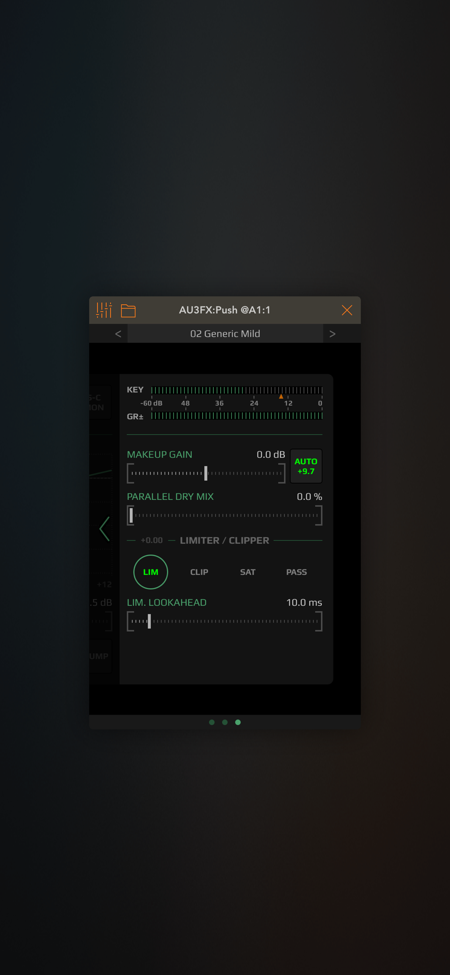 A highly tweakable stereo dynamics processor with noise gate, compressor/expander with external side-chain input, and limiter/clipper. From subtle compression, extreme pumping, to maximum loudness!