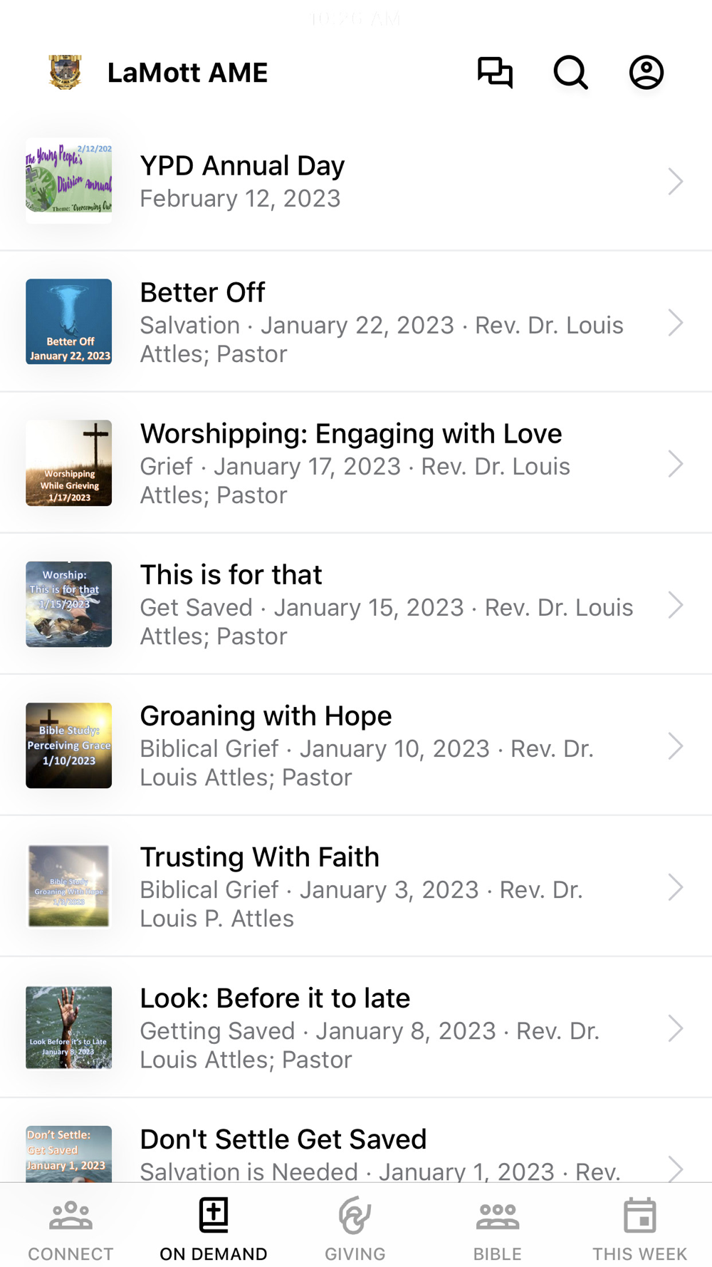- Watch or listen to past messages