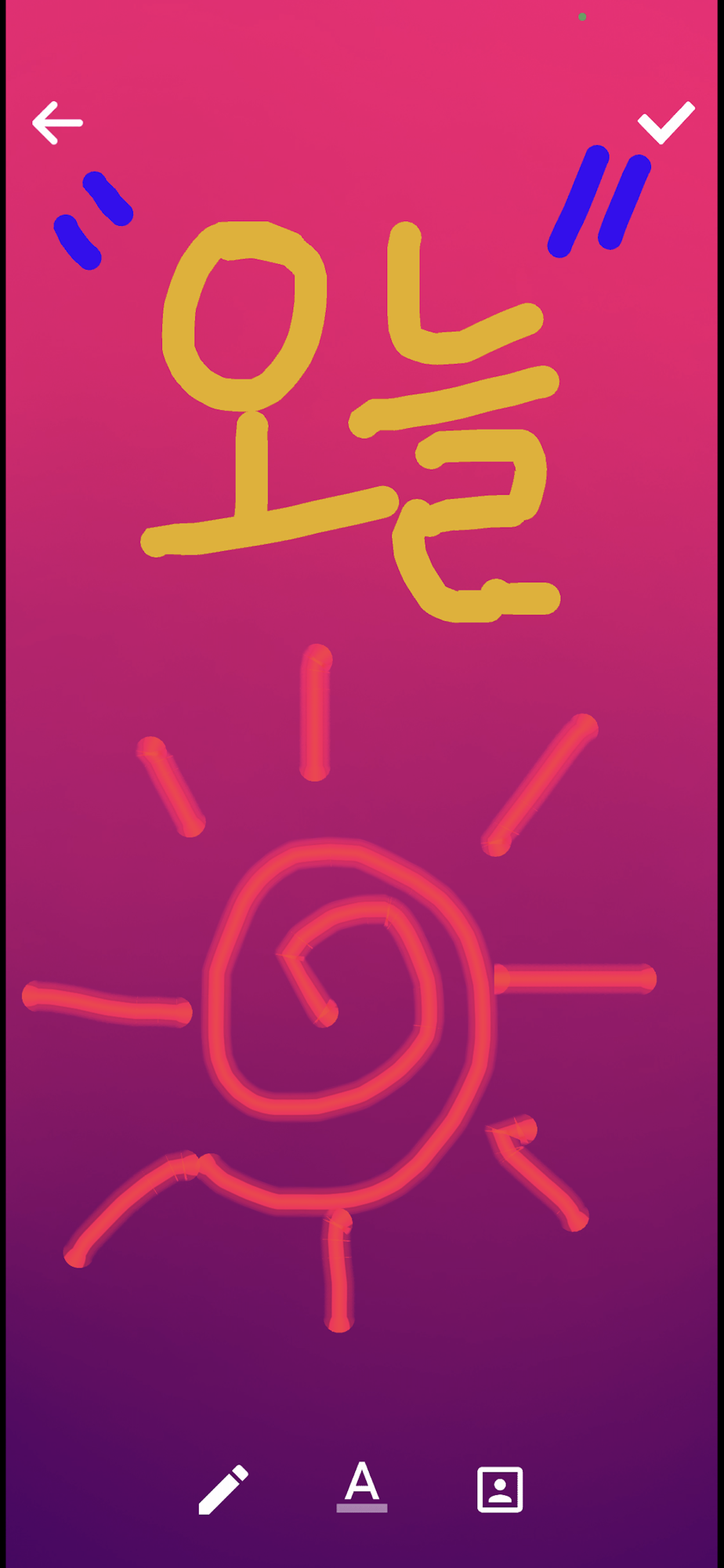 - 드로잉 툴(텍스트/이미지/브러시)을 활용하여 나만의 크리에이티브로 자유롭게 콘텐츠를 생산할 수 있습니다.