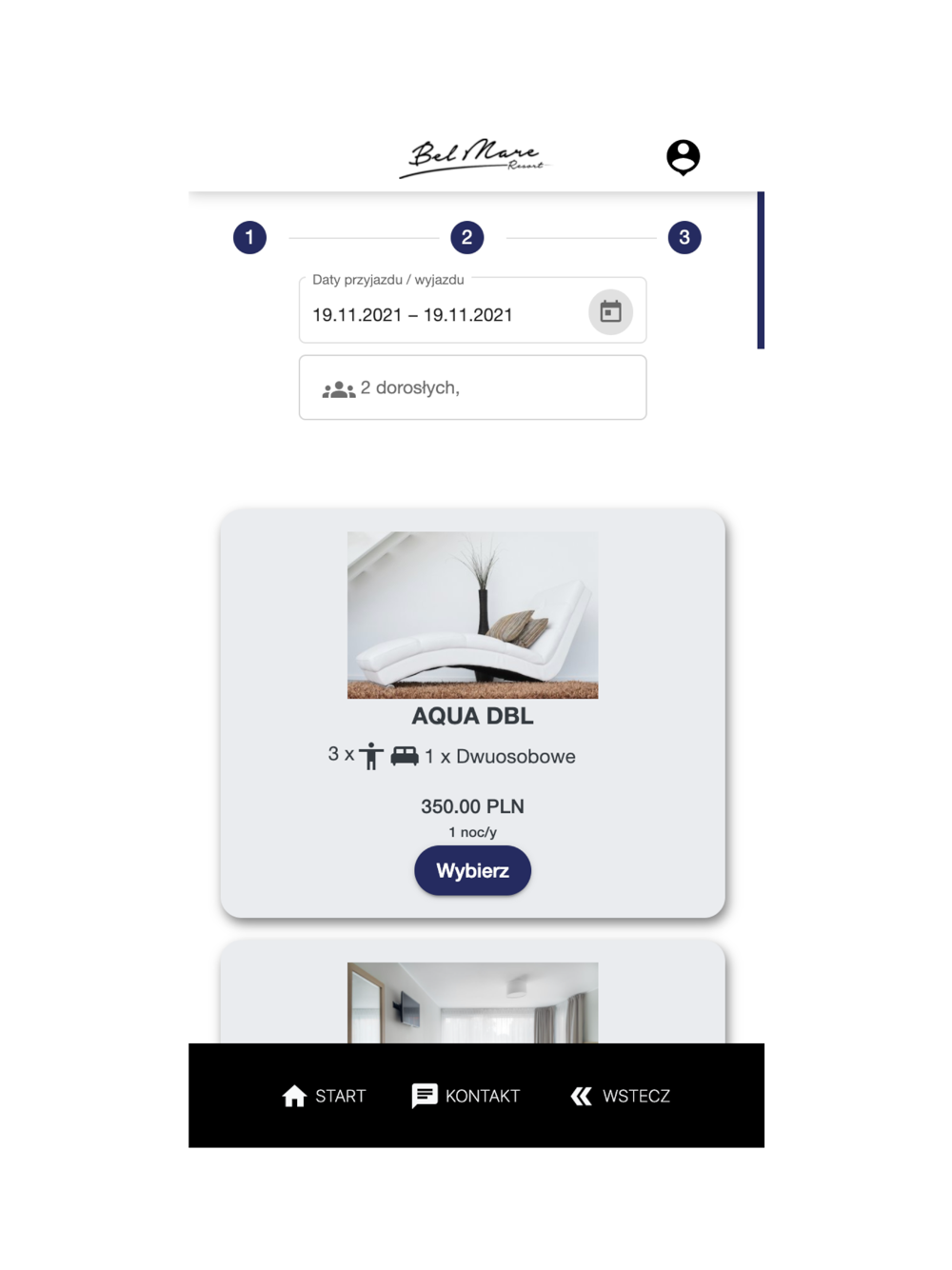 Aplikacja umożliwia wyszukanie i rezerwowanie pobytów w Hotelu Aqua Resort.