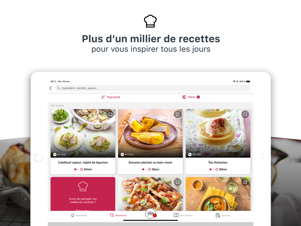 Terminé le manque d'inspiration devant votre frigo, l'application All-Clad est là pour vous aider au quotidien !