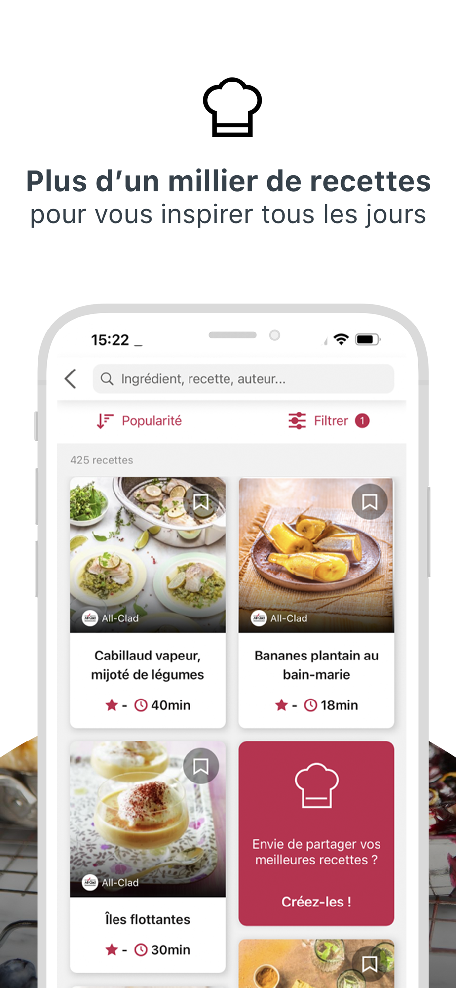 DEVENEZ MEMBRE DE LA COMMUNAUTÉ ALL-CLAD ! Créez ou modifiez vos recettes All-Clad depuis votre application puis partagez-les avec la communauté ou avec vos proches ! Vous pouvez également commenter et noter les recettes des autres membres de la communauté ou celles d’All-Clad afin de partager vos astuces !