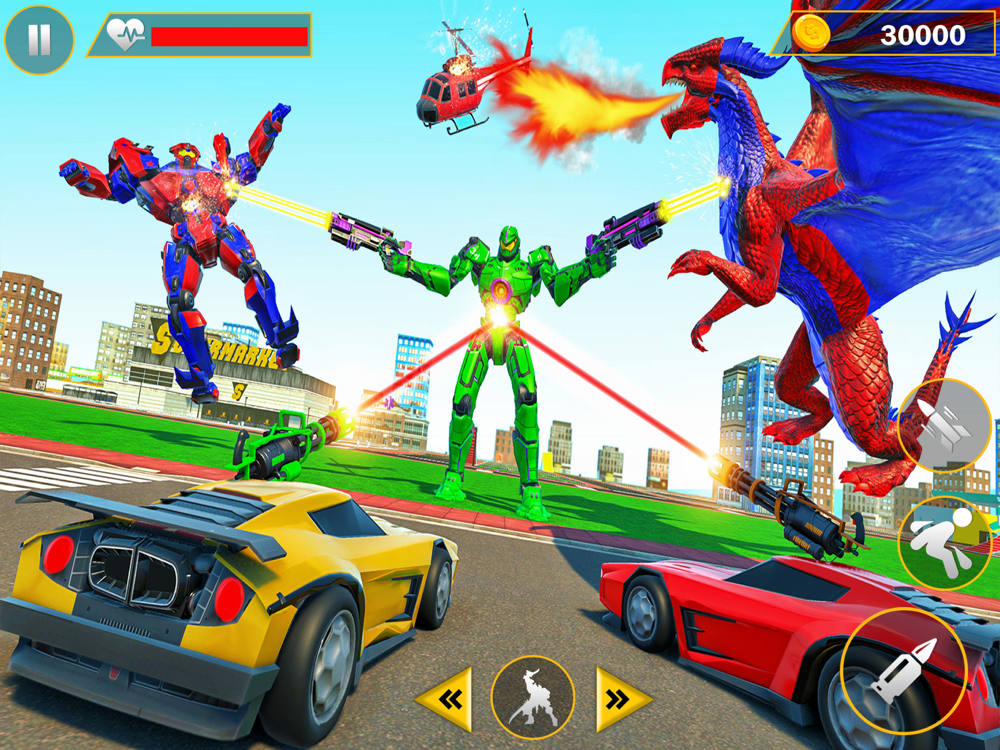 Welcome to flying dragon robot car games. In these multi-robot transforming games, you can transform into fire flying dragon and firefighter truck in all robot shooting games. This grand robot battle is full of revenge story missions to shoot the rivals with all your superpowers in mega robot wars in this dragon robot games. Get ready for the grand robot wars with alien robots, you are the only hope of the city in this police truck robot game. Flying dragon robot transform war is full of alien invasion which can be stopped by your magical powers in all multi-robot transformation games. You might like this robot shooting game by vanishing all the alien robot rivals with sniper guns and machine guns in your hands in all flying dragon robot car games.