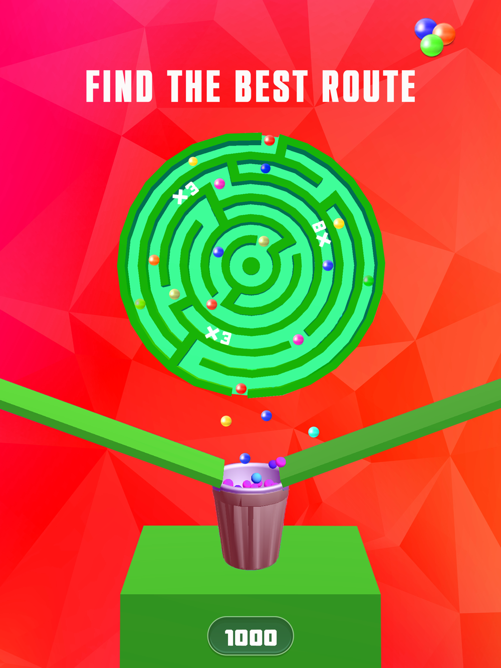 Spin the wheel maze, left or right, and pass the balls through multipliers so that you can clone ball and also find path to let the balls out. And finally bounce and collect clone ball in the cup.