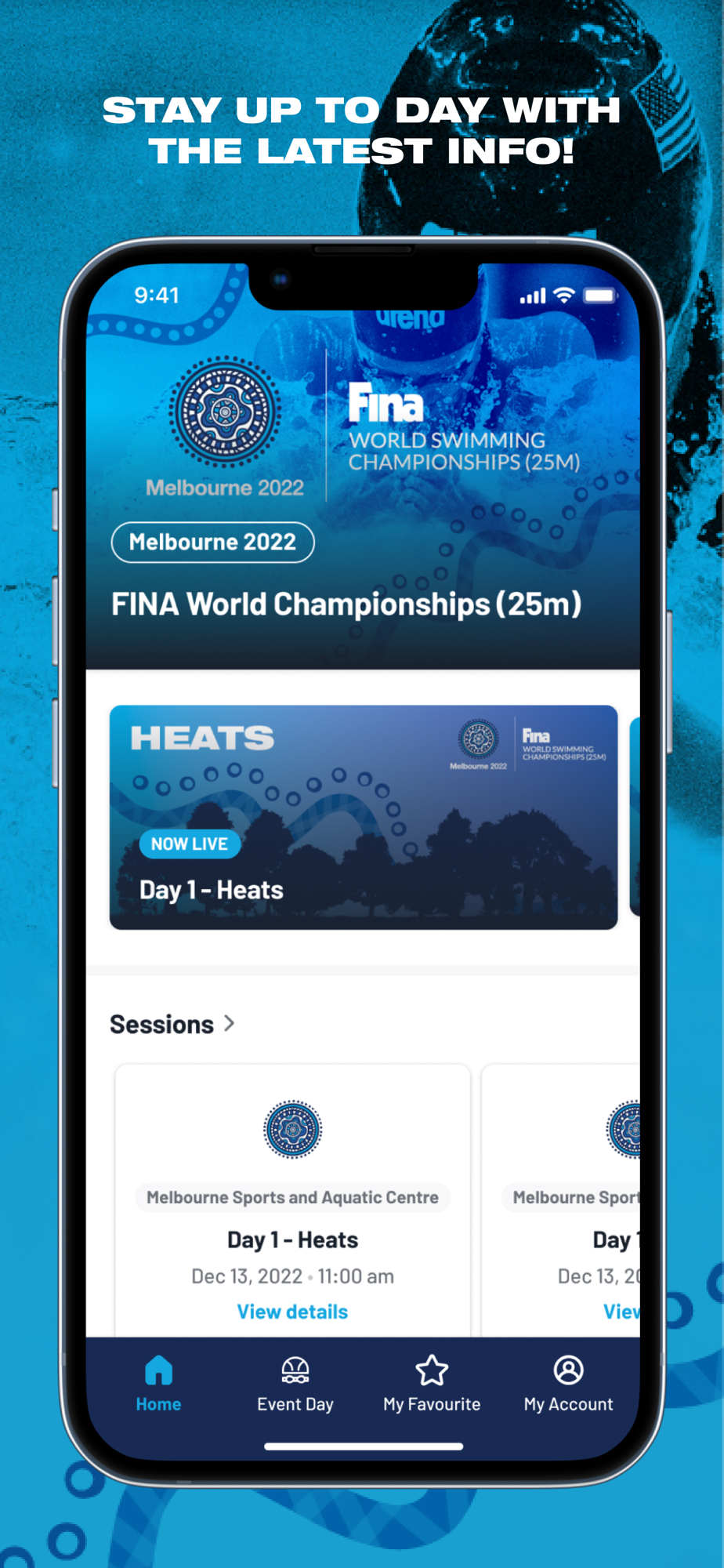 The FINA Melbourne app is the official mobile home for the 2022 FINA Swimming World Championships (25m). Whether you’re at the event or watching at home, this app is a must-have for all Swimming enthusiasts. Everything you need to plan your day and join in the fun is at your fingertips.