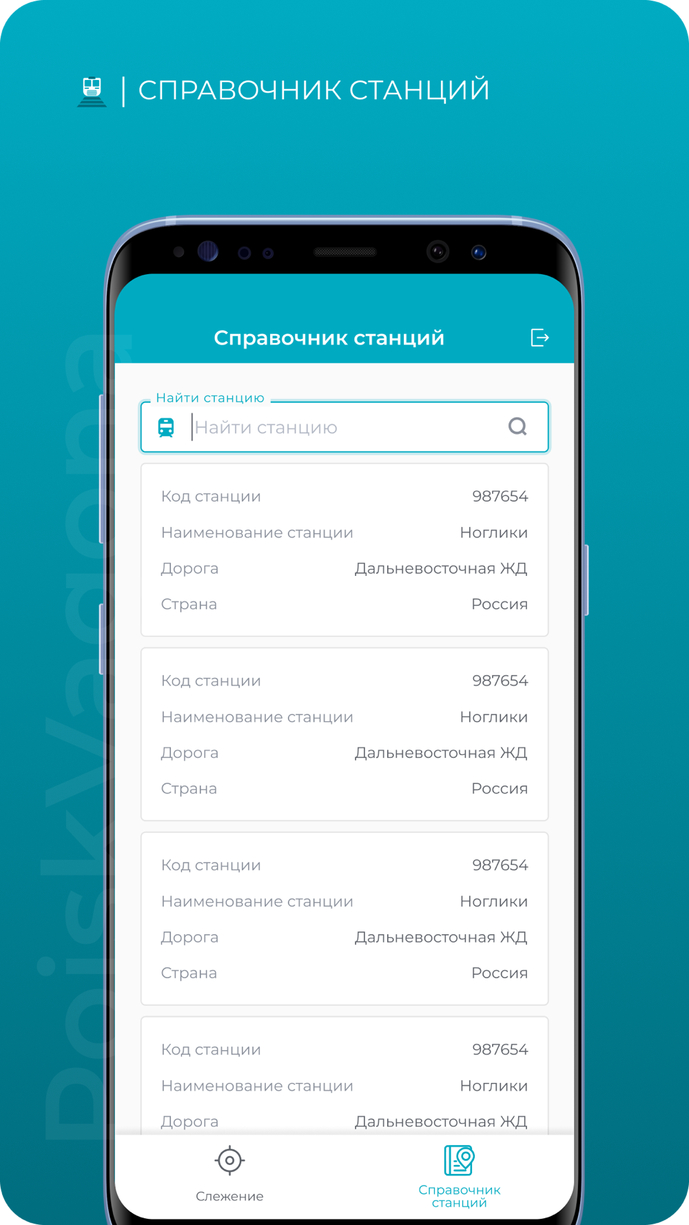Приложение для клиентов Ж/Д транспорта, информирует пользователей о дислокации, техническом состоянии вагонов и контейнеров, а также об операциях с ними в процессе перевозки. Сервис определяет дислокацию вагонов и контейнеров на протяжении всех этапов перевозки. Позволяет отслеживать местонахождение, последние операции с вагоном и контейнером, состояние вагонов, оперативную оценку времени прибытия груза.