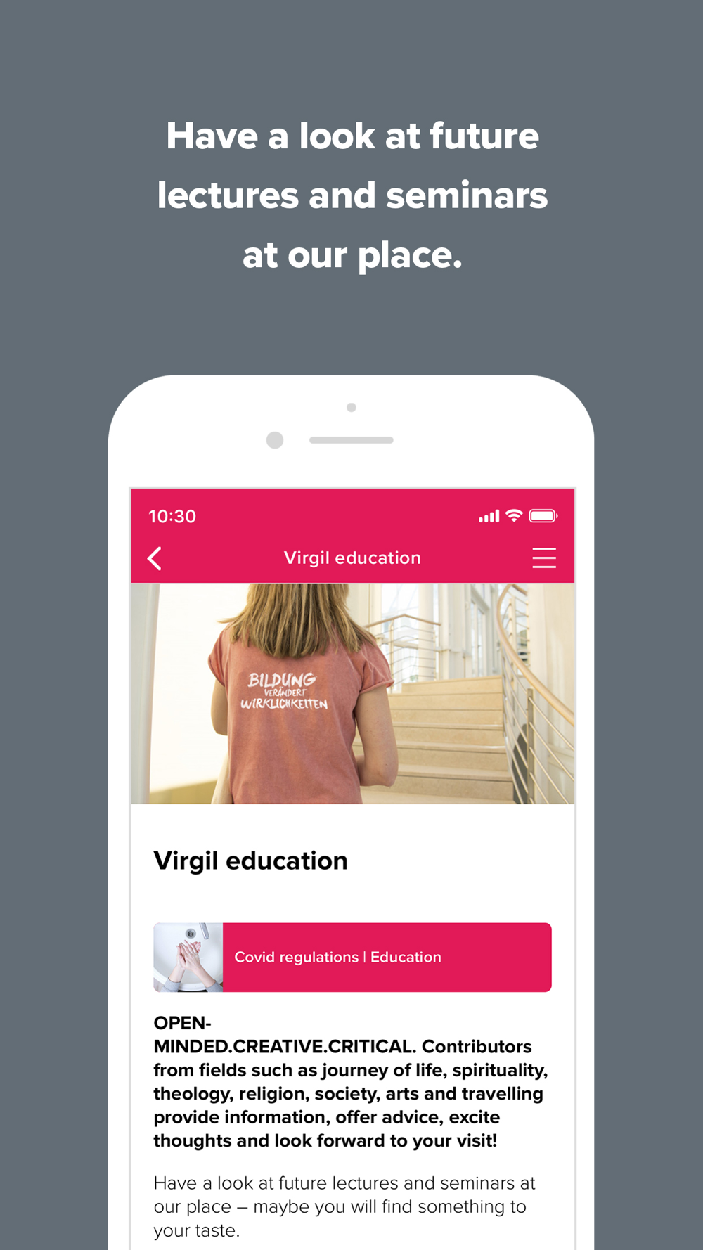 You’ll receive the latest news as a push notification on your smartphone or tablet as well as via our Virgil magazine – that way you will always be up to date with what’s going on at St. Virgil Salzburg.