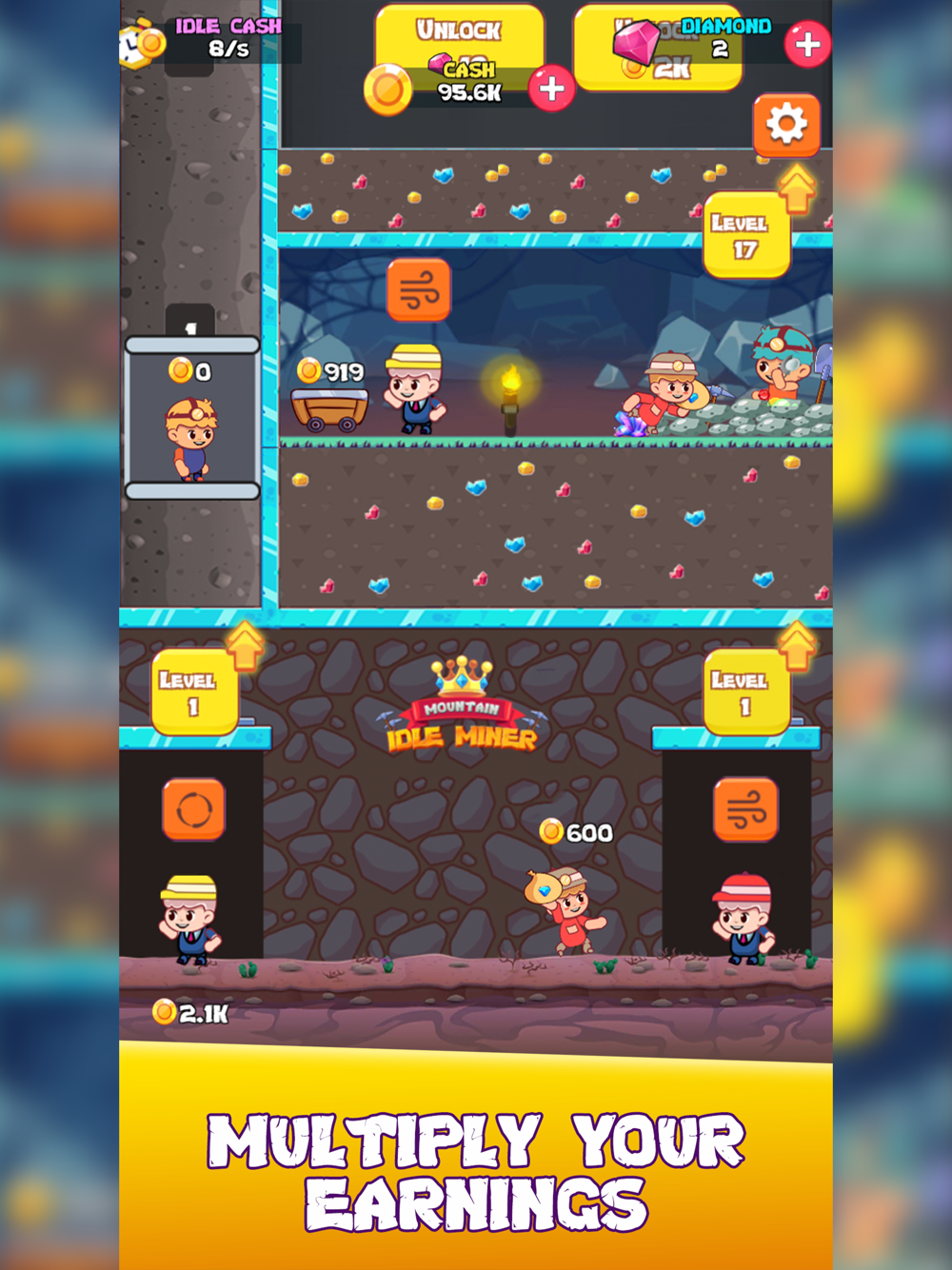 Expand your empire & give it a boost with managers. Take on the challenge and discover the best mining strategy and earn as much cash as possible!