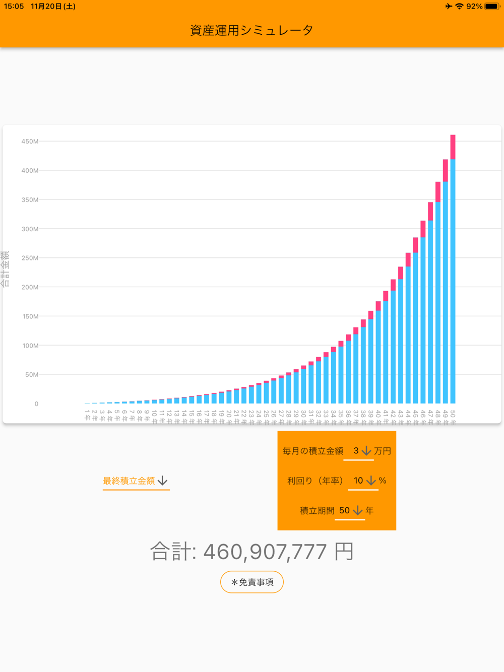・本シミュレーション及び掲載された情報を利用することで生じるいかなる損害(直接的、間接的を問わず)についても、当方は一切の責任を負うものではありません。実際の資産運用や投資判断に当たっては、必ずご自身の責任において最終的に判断してください。