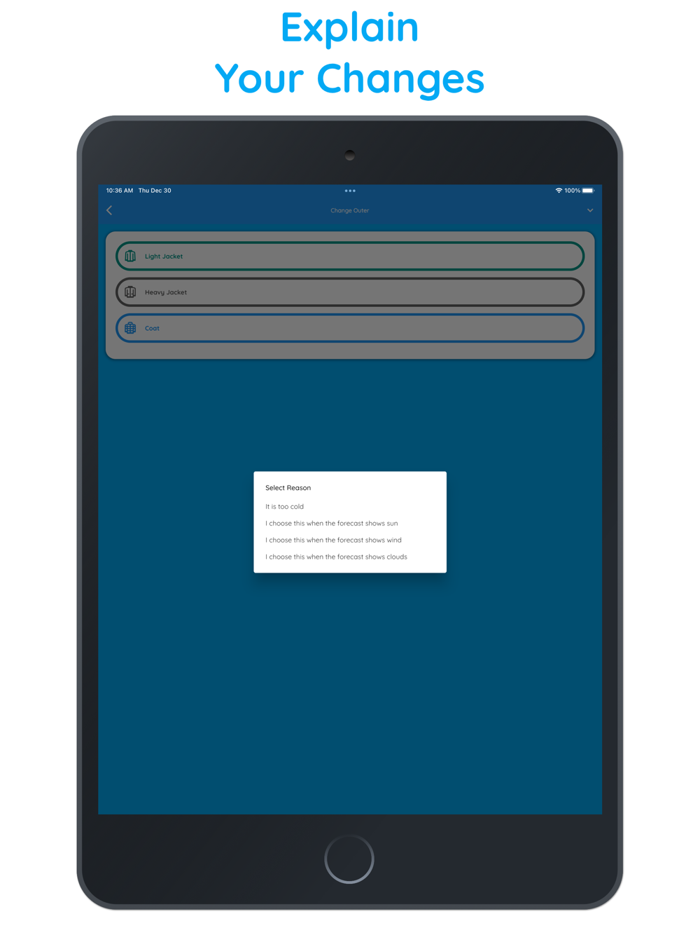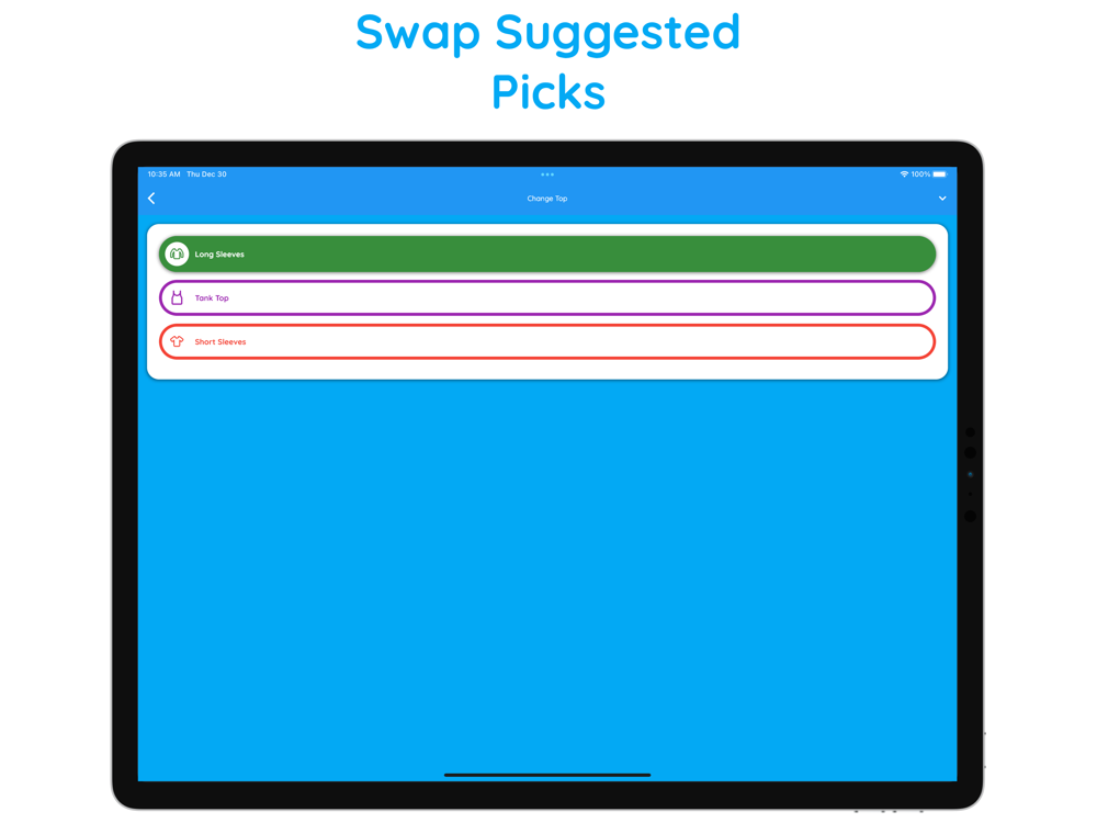 Weather Wear takes the guesswork out of your fashion choices by analyzing the forecast and providing suggestions. As you swap and add missing items, Weather Wear learns your preferences and gets more accurate.