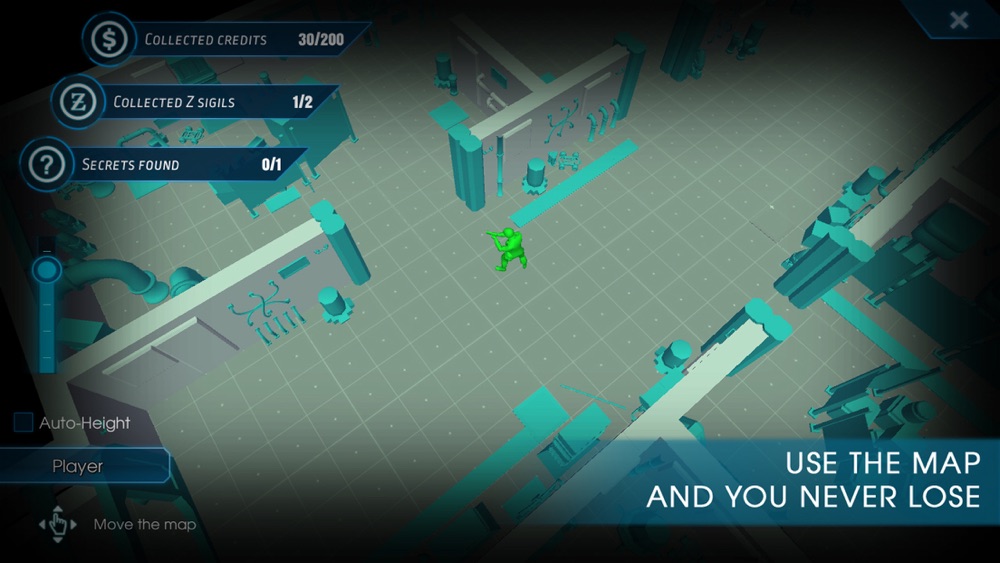 Detailed 3D map with a visual menu of found game bonuses and secrets;