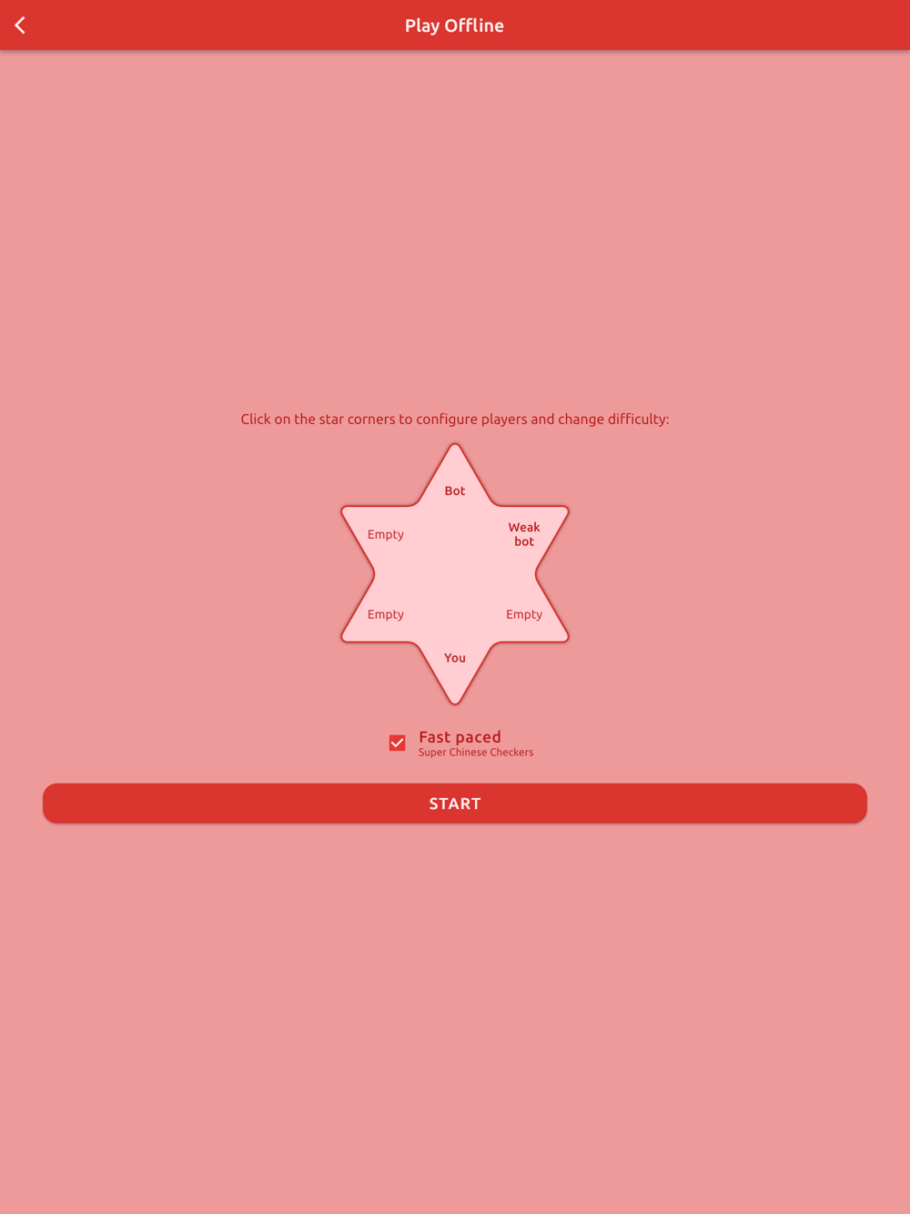 - both the normal mode and the Super Chinese Checkers mode (the fast-paced mode usually takes much less time to finish) are available.