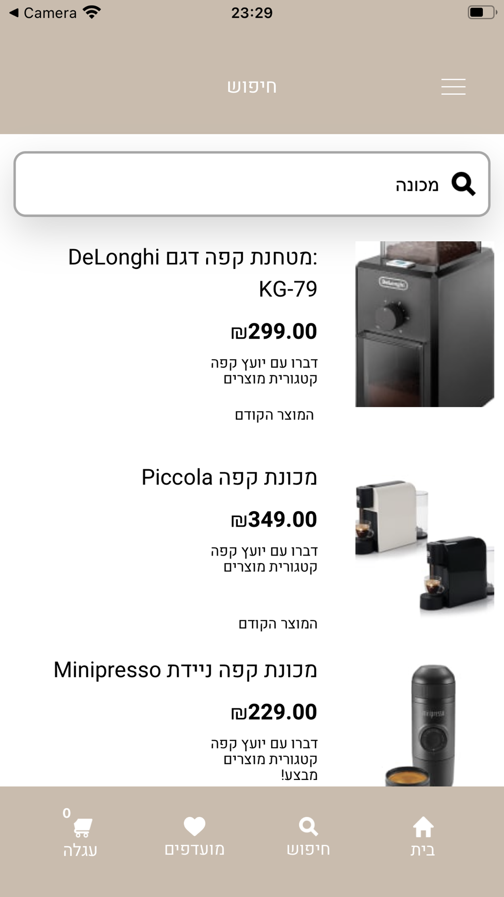 במרחק של מספר קליקים תוכלו לרכוש את מיטב המוצרים שאתם צריכים על מנת לקבל את הקפה המושלם, ובמחירים מצוינים.