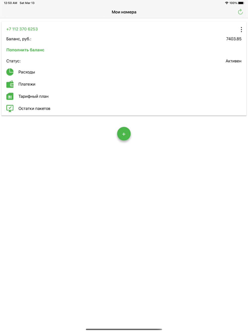 Просмотр баланса, остатков пакетов минут, интернета и сообщений.