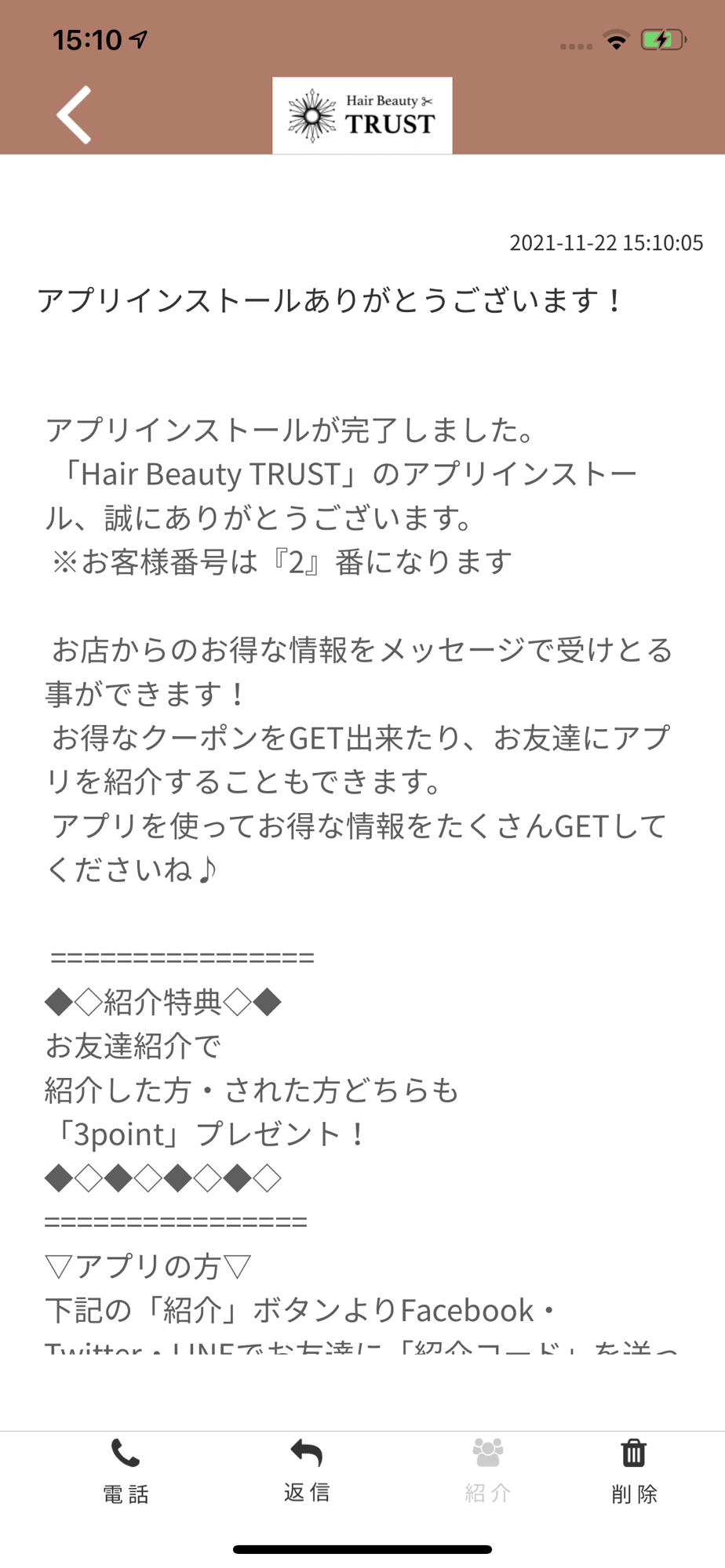 TRUSTのアプリをSNSを通じてお友達に紹介する事ができます。