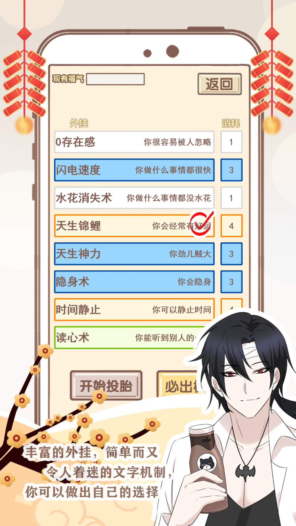 多种外挂任你选择,做一个天选之人,你的开挂人生由你自己主宰!