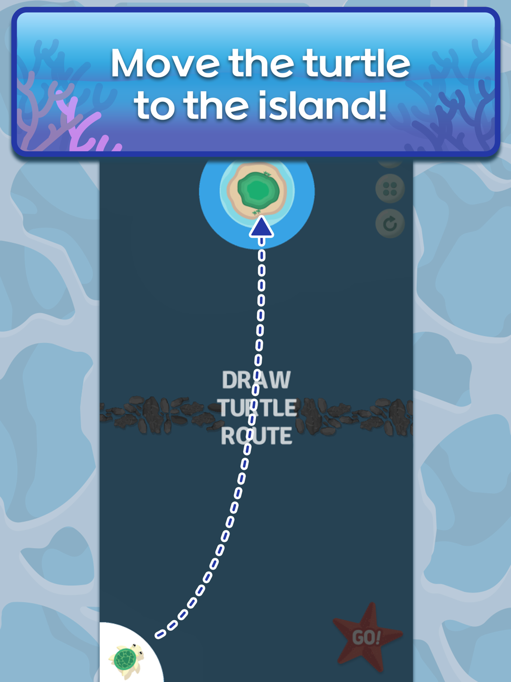 It's a game about the turtle's path, and you can draw a path so that you can safely go to your destination by avoiding obstacles.